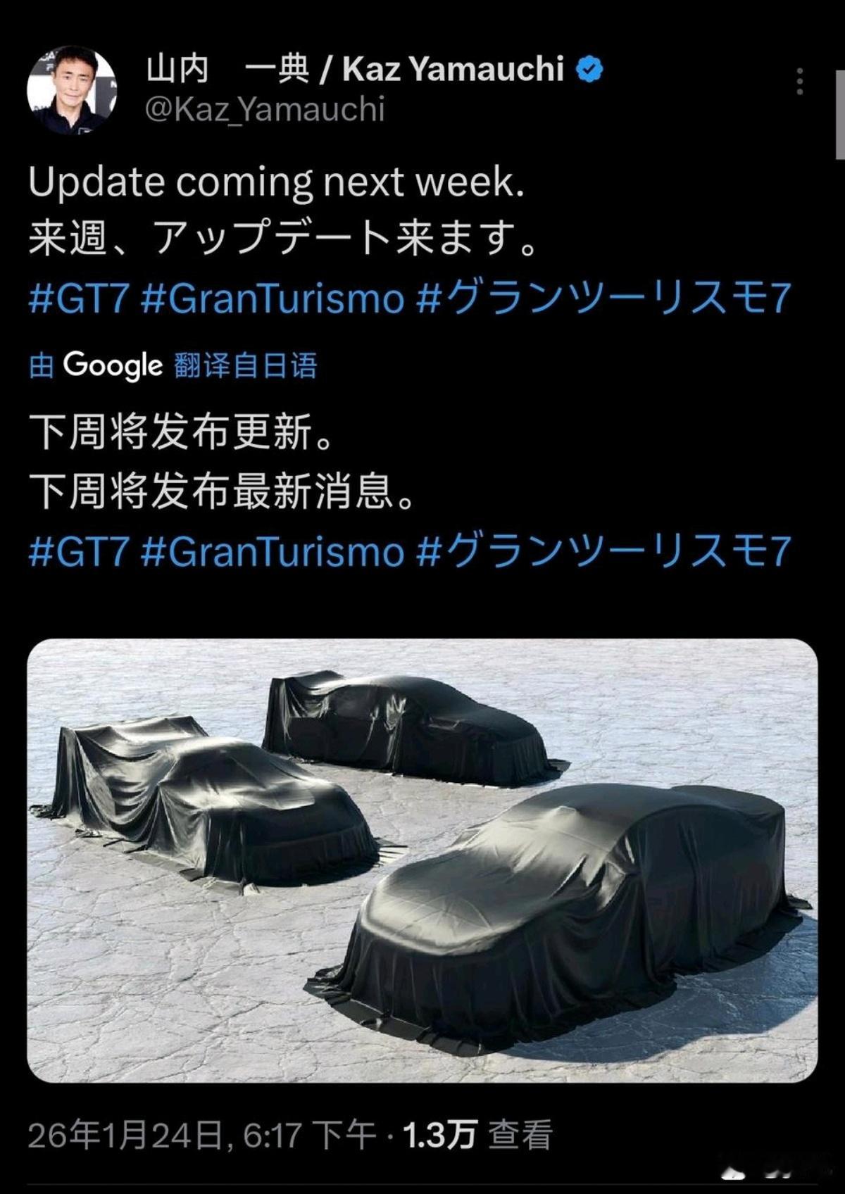 刚才看GT7吧,发现山内一典提前预热了下周即将登场GT7的车型,这一个大尾翼+很明显的激光雷达,这不就小米SU7 Ultra嘛。去年官宣的合作今年年初终于正式登场,相信不少GT7玩家非常期待。小米SU7 Ultra入驻《GT赛车7》,不仅是山内一典对中国造车实力的认可,更是中国汽车的一次底气彰显。第一款高性能车就敢闯纽北,凭硬实力与超跑同场竞技,让全球玩家看见中国汽车的技术与追求,这份突破,值得所有掌声。
