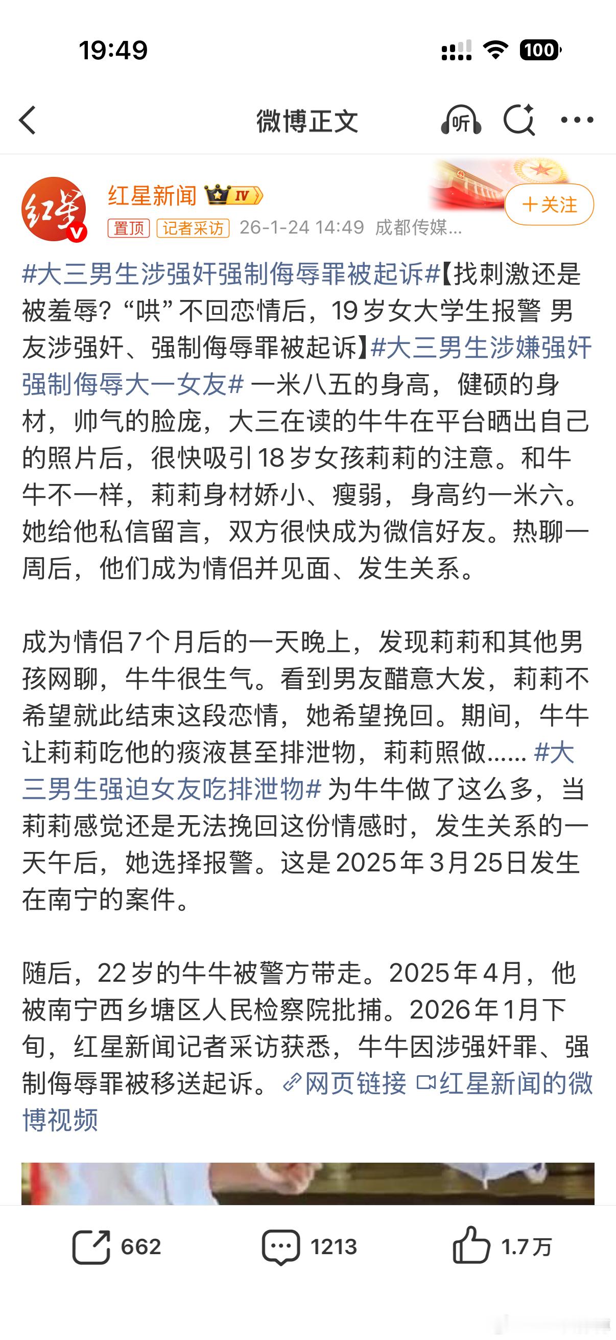 大三男生涉嫌强奸强制侮辱大一女友 省流总结:本身是男女朋友,期间发生波折,男发现女撩骚开始SM女,女同意玩SM但最终依然被分手。最后女报警男的被抓。