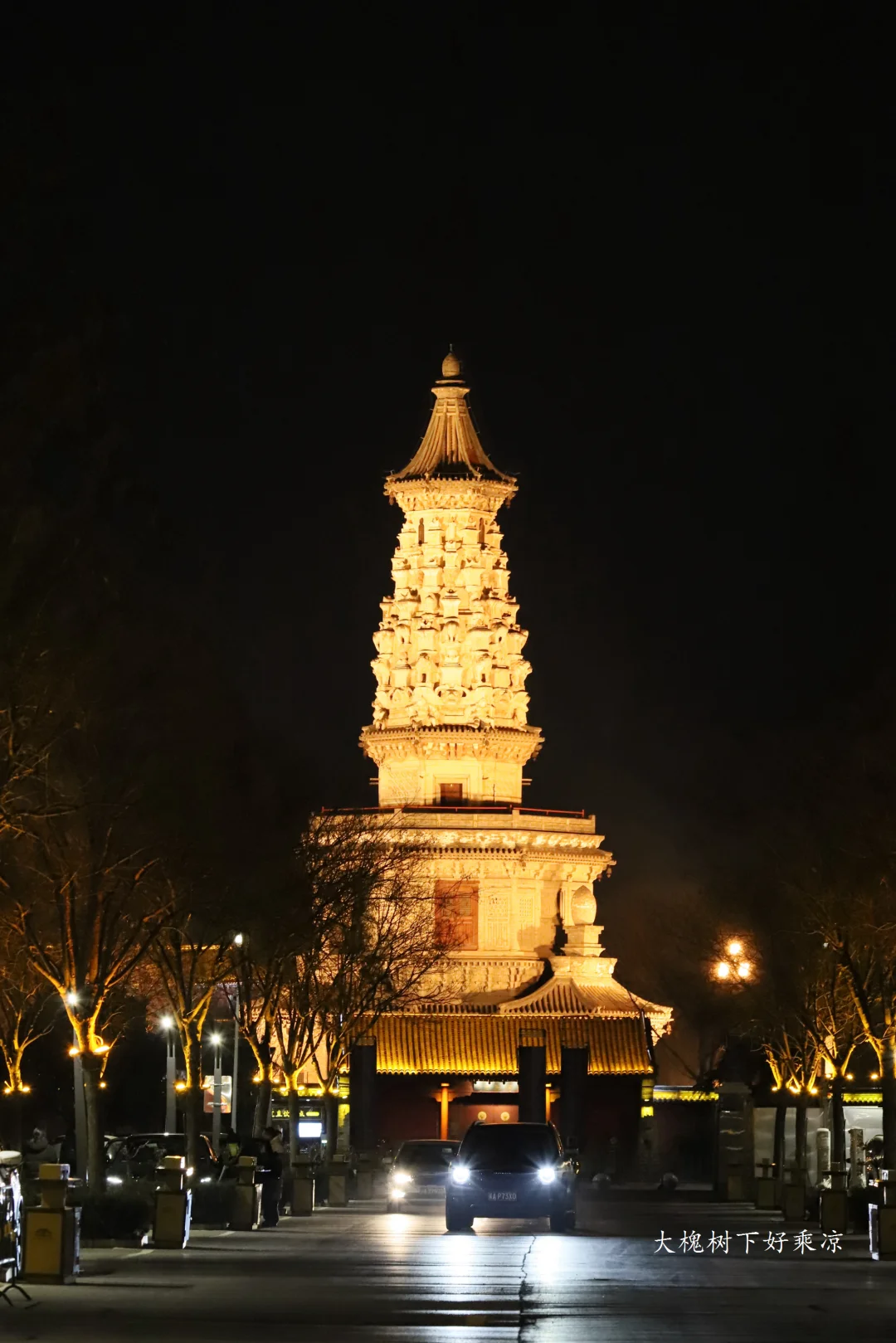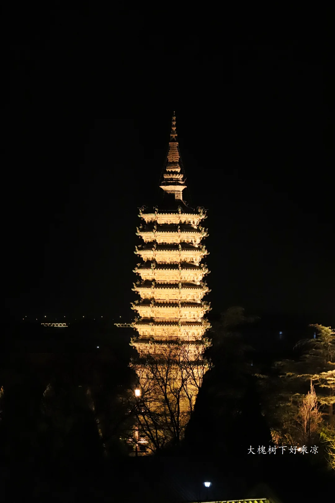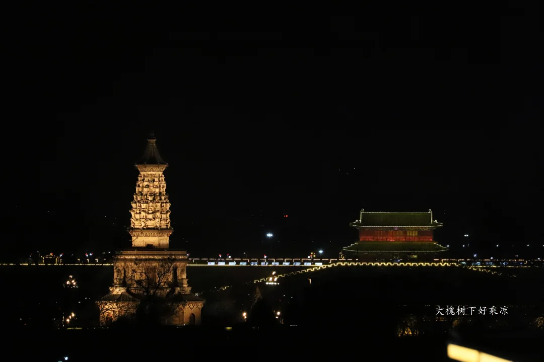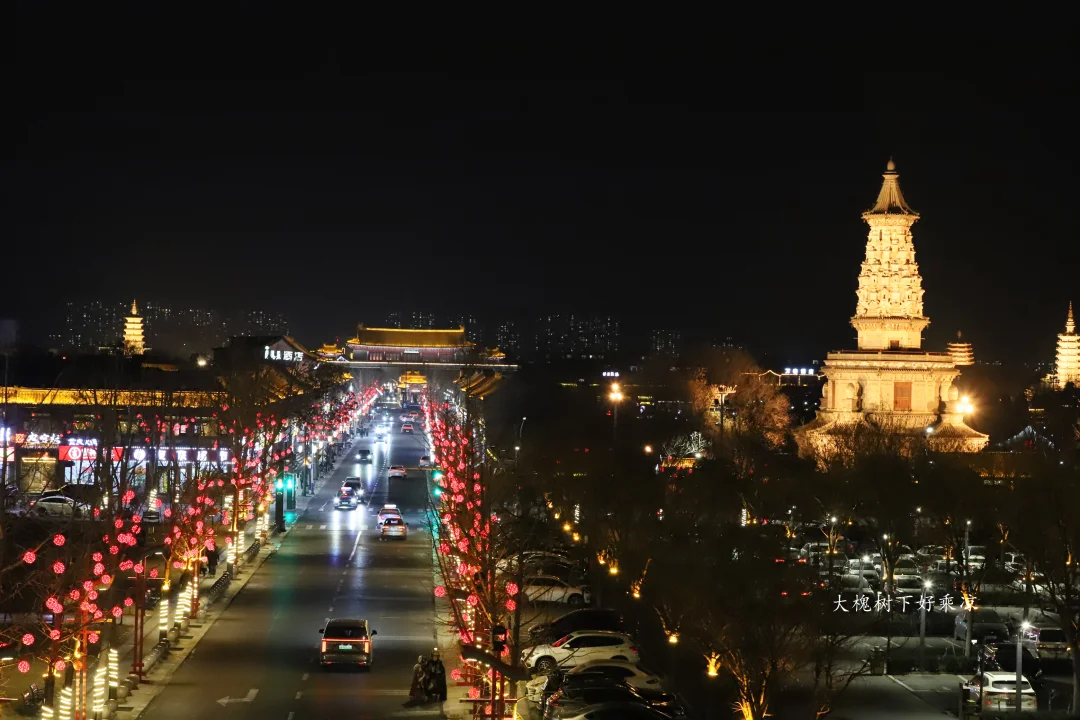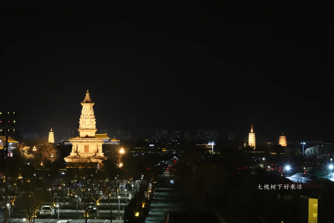 正定古城夜景,四座宝塔燿古城
