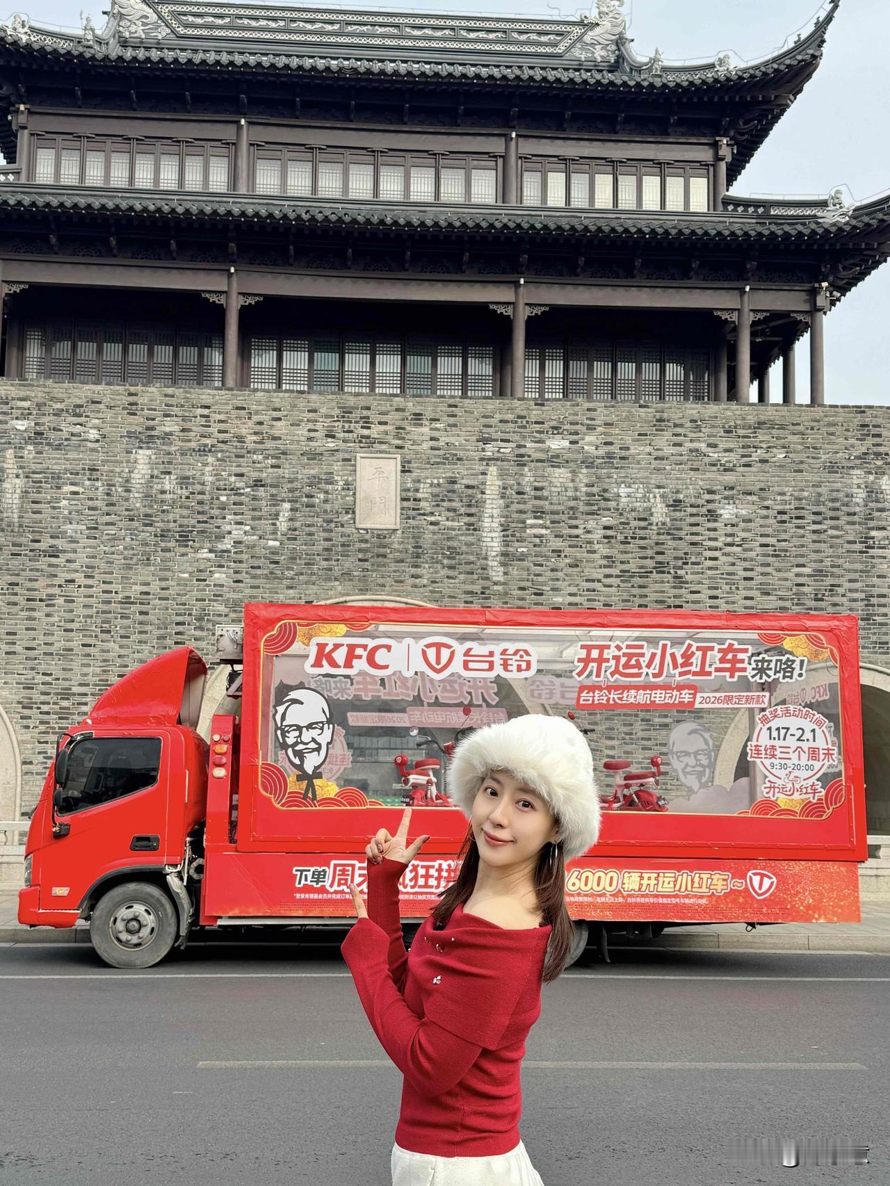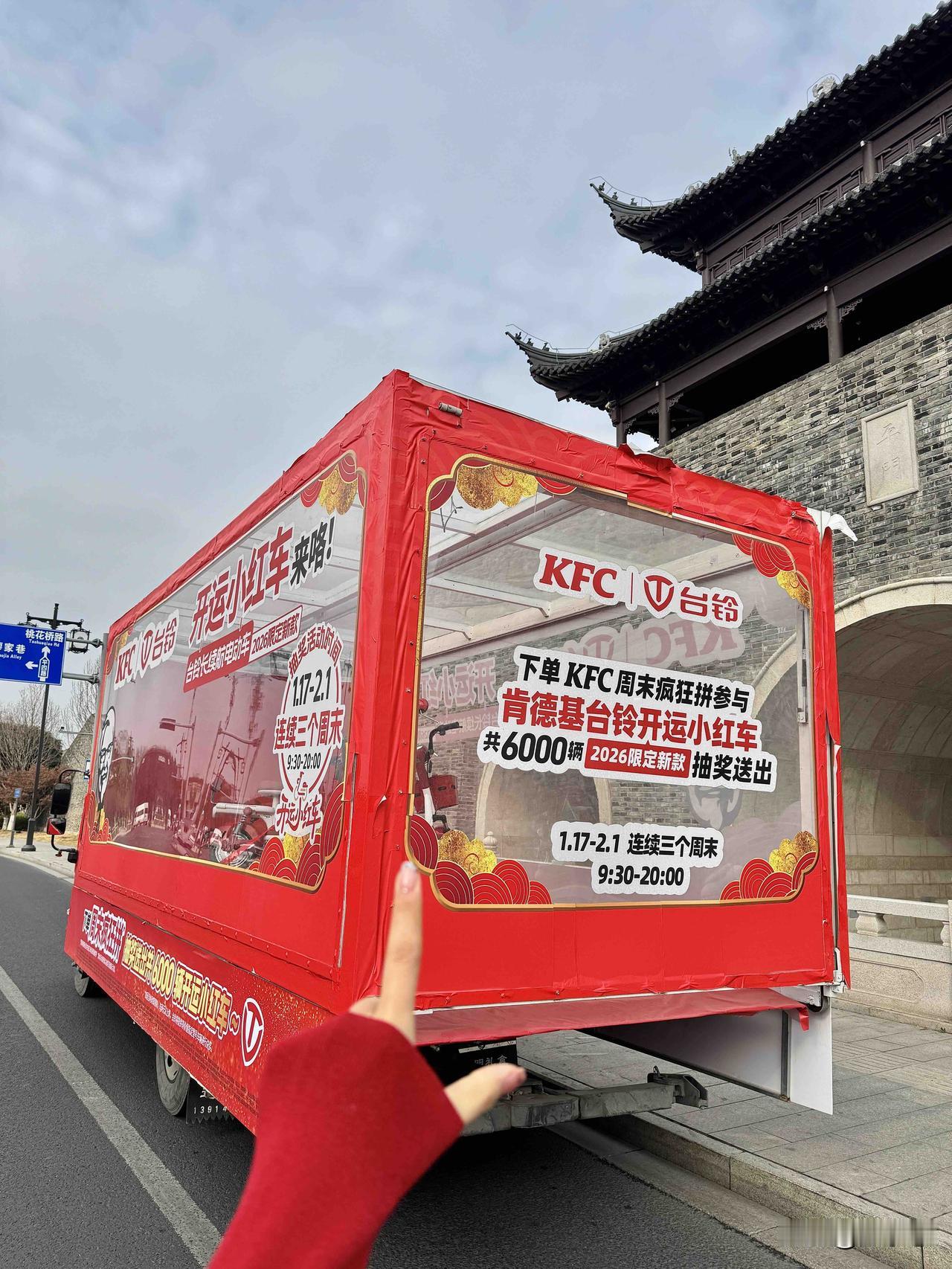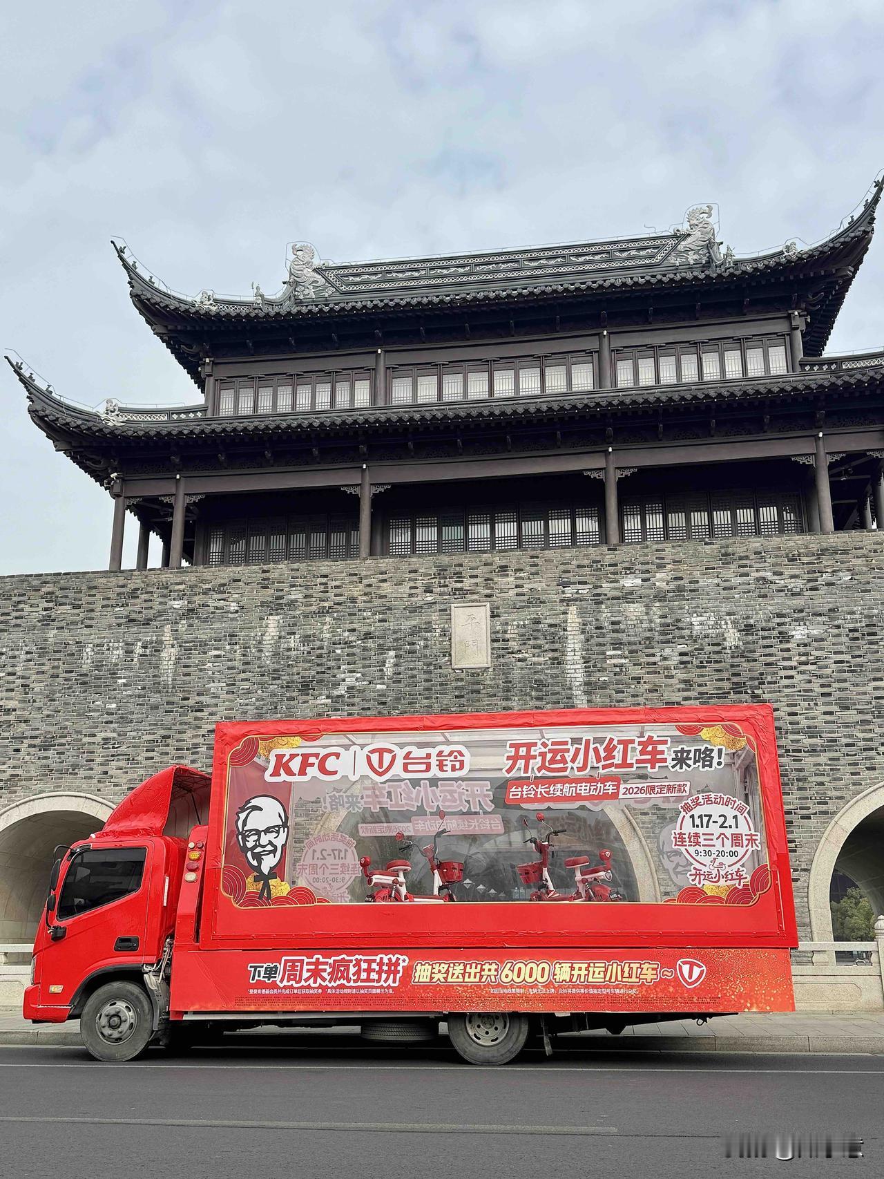 新年红运🐎偶遇台铃&KFC开运小红车啦!🛵||hi!我在苏州平门 偶遇台铃x肯德基联名车的运输透明货车啦!
