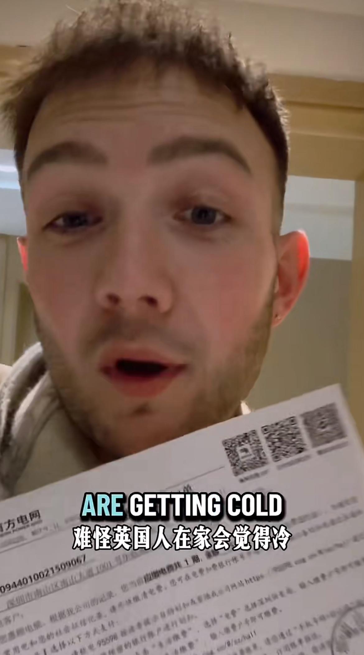 住在中国的英国博主在外网上嘲讽英国人:难怪英国人在家会觉得冷,他还故意展示了电费账单,一个月才16英镑,也就一顿饭的钱就有暖气可以吹,冬天在室内也不用穿很多衣服,在英国,如果每天都开暖气的话,收到电费账单得破产吧