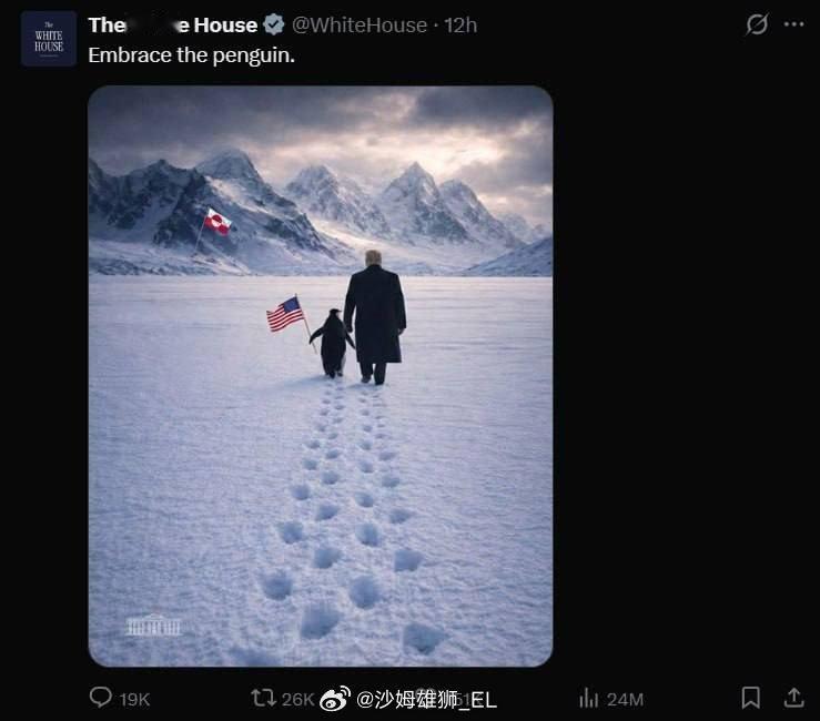 美国白宫与国防部账号持续发布关于格陵兰岛的AI图。