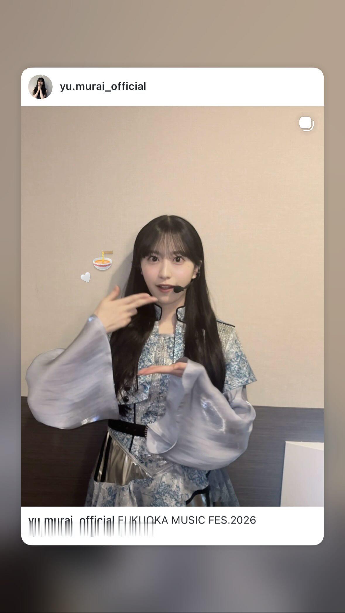 村井優「FUKUOKA MUSIC FES.2026ありがとうございました♡福岡の美味しいごはんを楽しみ尽くしましたーー🍜🍓♡」 muraiyugram