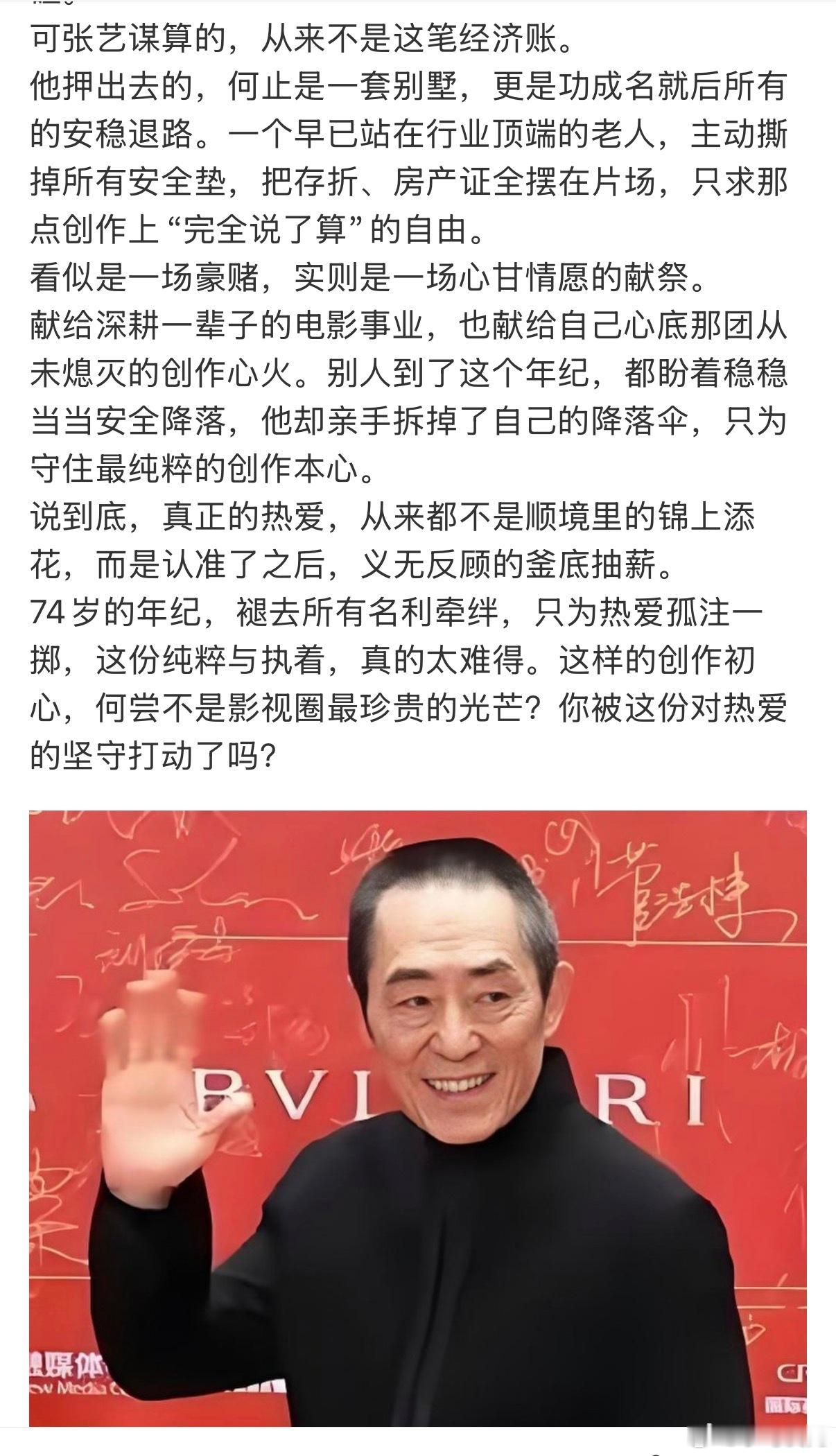 继吴京抵押房子之后,张艺谋又变卖了别墅来拍电影…这些自媒体的小作文看得我一愣一愣