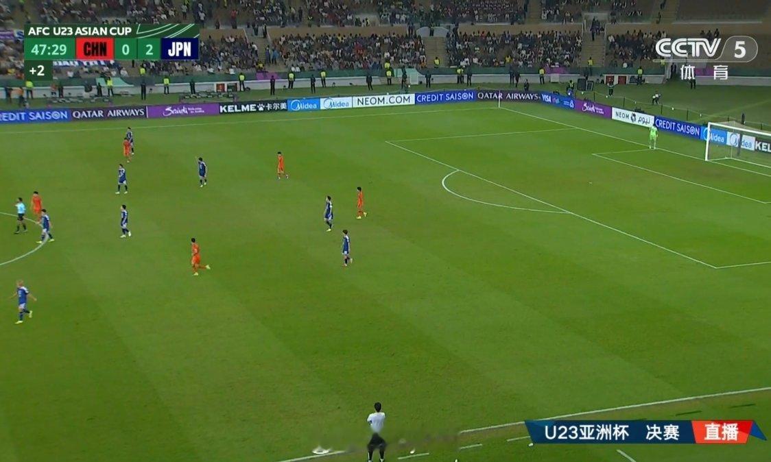 半场比赛结束,中国队0比2日本队u23国足vs日本亚洲杯u23国足vs日本u23