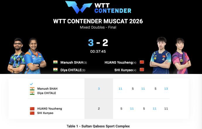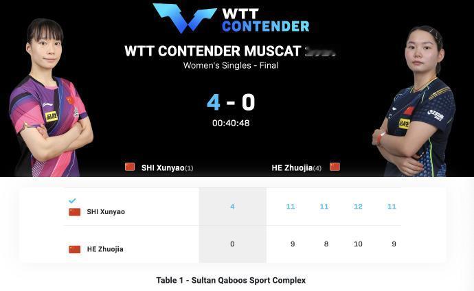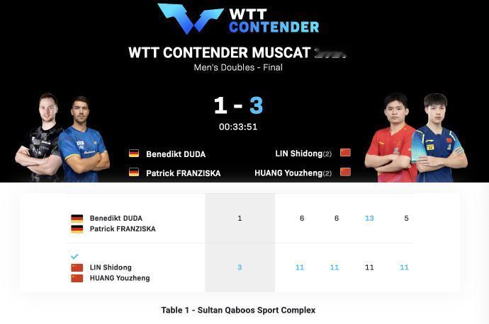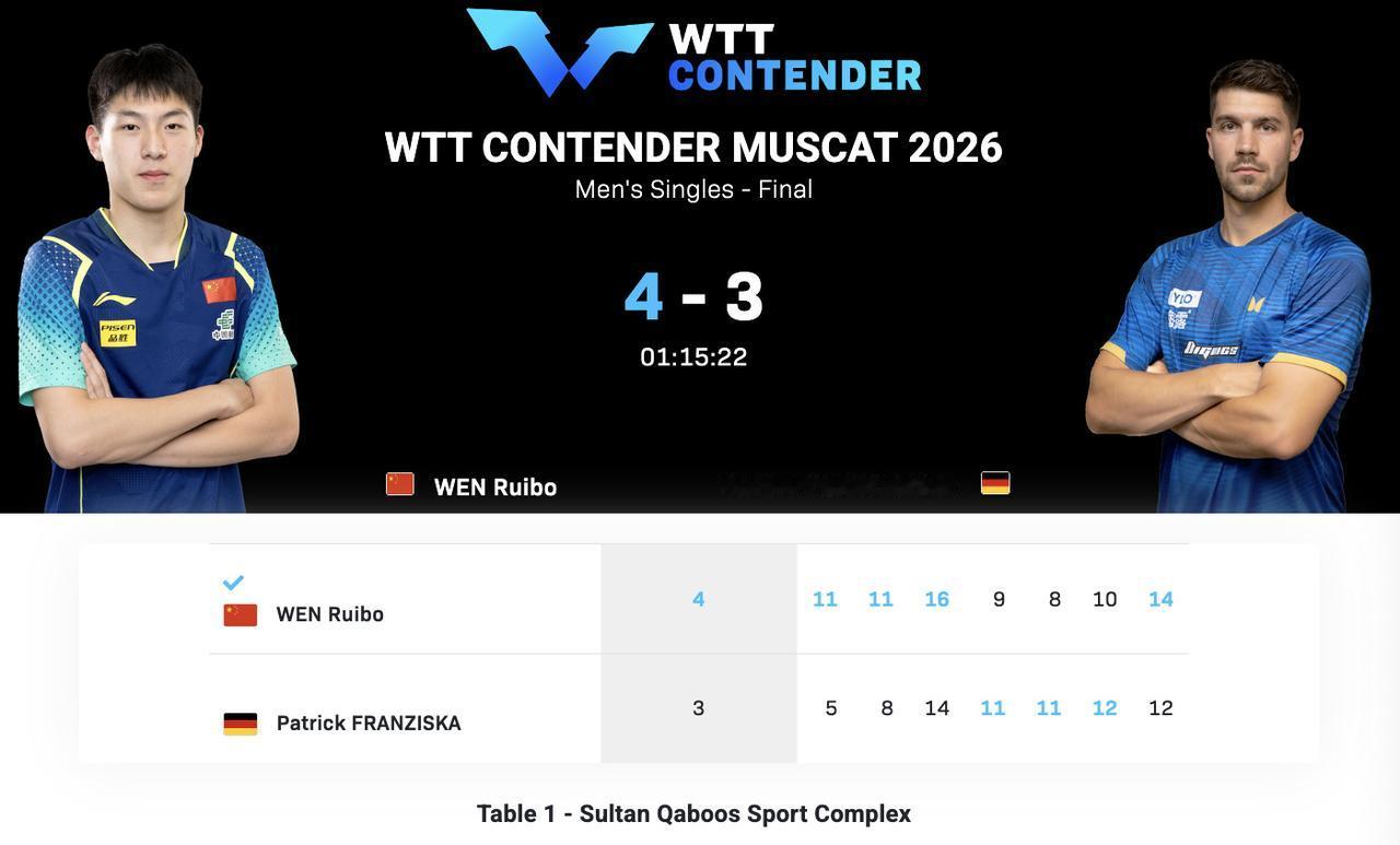 看来400积分的马斯喀特常规挑战赛,国乒采用的人海战术还是有效果的,收获了4冠2亚的好成绩! 今年开年连续三站国际比赛,前面冠军赛1000积分和球星挑战赛600积分,国乒都是0冠收官,400积分的比赛反而成绩最好,要是大积分也这么给力就好了! 国乒在WTT常规挑战赛马斯喀特站收获的4冠2亚,具体比分如下 混双决赛-印度冠军,国乒亚军 黄友政/石洵瑶🇨🇳 2-3 玛纳什·沙/奇塔莱🇮🇳 【5-11,11-5,5-11,11-5,11-13】 男双决赛-国乒冠军,德国亚军 林诗栋/黄友政🇨🇳 3-1弗朗西斯卡/杜达🇩🇪 【11-6,11-6,11-13,11-5】 女双决赛-国乒冠军,港队亚军 覃予萱/纵歌曼🇨🇳3-0杜凯琹/吴咏琳🇭🇰 【14-12,11-8,11-1】 女单决赛-国乒包揽冠亚军 石洵瑶🇨🇳4-0何卓佳🇨🇳【11-9,11-8,12-10,11-9】 男单决赛-国乒温瑞博冠军,德国选手弗朗西斯卡亚军 温瑞博🇨🇳4-3帕特里克·弗朗西斯卡🇩🇪 【11-5,11-8,16-14,9-11,8-11,10-12,14-12】