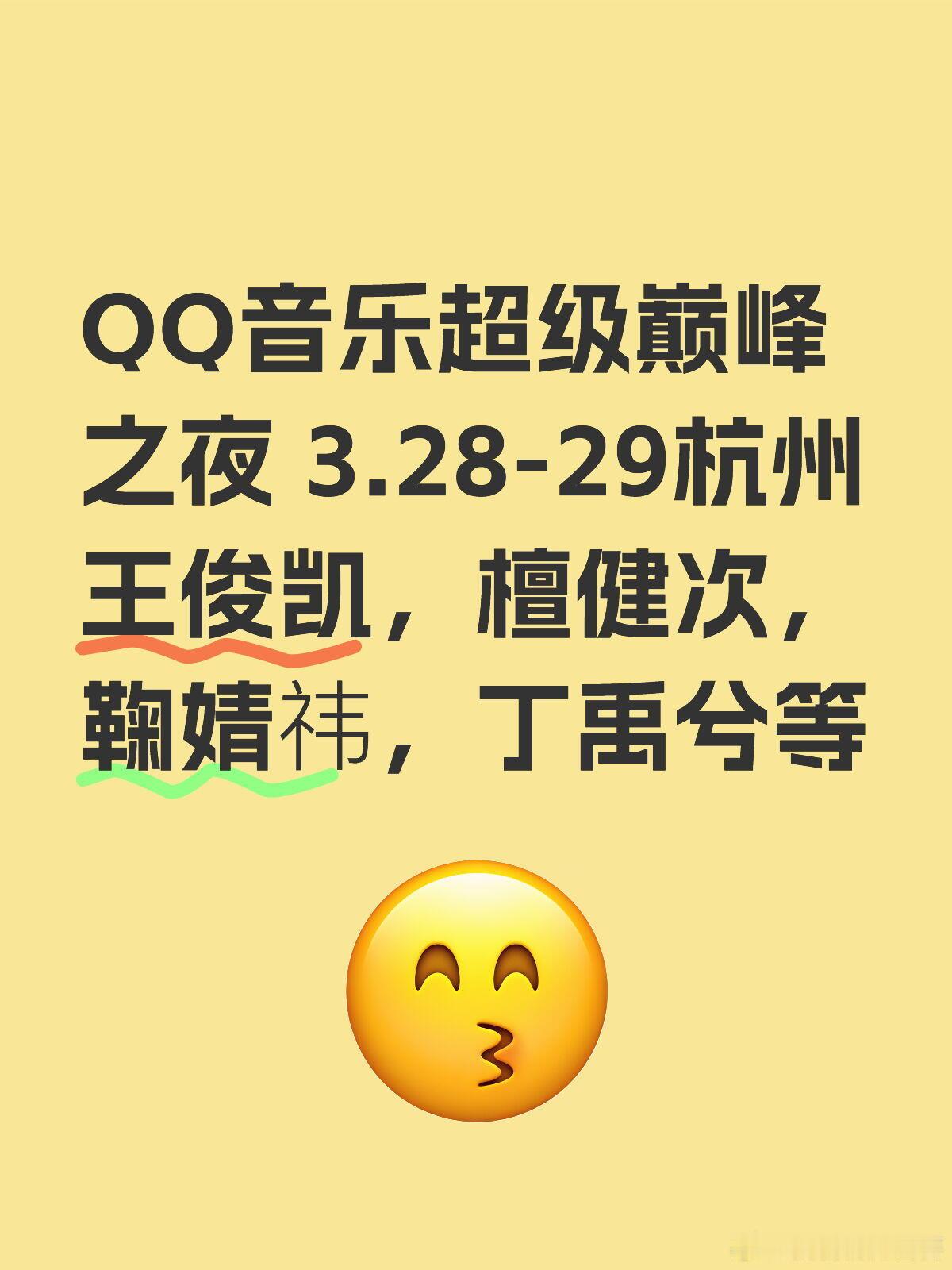 QQ音乐超级巅峰之夜 3.28-29杭州王俊凯,檀健次,鞠婧祎,丁禹兮等QQ音乐超级巅峰之夜|