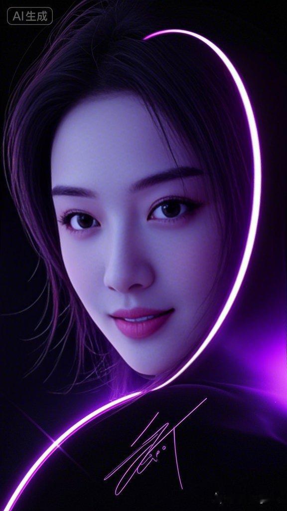 极度深黑背景,压低光线衬些许紫色动感光影,柳亦霏自黑暗中凝眸窥视世界,轮廓冷峻细节精湛,暗调里藏隐秘张力,高品质质感满溢,氛围感拉满。
