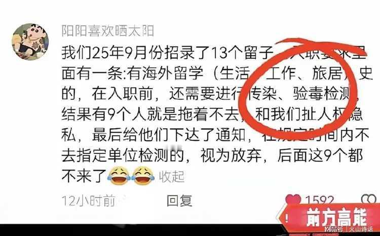 网友爆料,上海一家公司招聘了13名海外留学生,9女4男。 4名男性均按时提交了体检报告,而9名女性无一例外地都未提交。 你品,你细品,这9名女留学生为何不交体检报告? 不交体检报告,人们只是对她们风言风语,还只是捕风捉影。一交了报告,很可能就会坐实她们的三通一达。 现在求职不易,是个人都不会轻易放弃这个机会。但这几个女海归还是放弃了这难得的,求之不易的机会。 确实为她们感到可惜。 唉,害死人的三通一达!