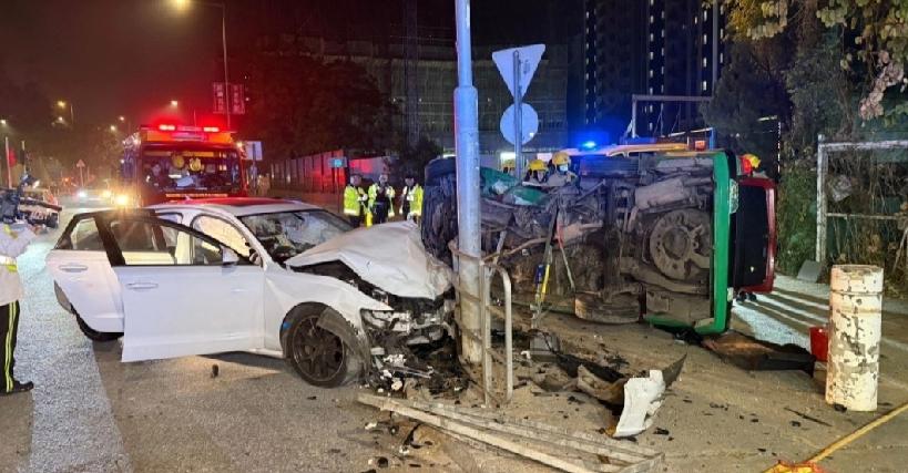 #香港交通事故#锦田发生致命交通意外。今日(25日)凌晨零时许,警方接获报案,指锦田公路近映河路一辆新界的士与私家车相撞,的士事后翻侧,司机及女乘客被困车内。 救援人员赶抵现场时,的士男司机仍然清醒,而车上一名女乘客被困车厢内陷入昏迷。消防员随即展开拯救行动,成功将女乘客救出。消息指,女乘客被救出时一度没有呼吸及脉搏,救护员即场为其进行急救,其后由救护车送往博爱医院抢救,惟至凌晨两时许宣告不治;男司机事后亦被送往医院治理。