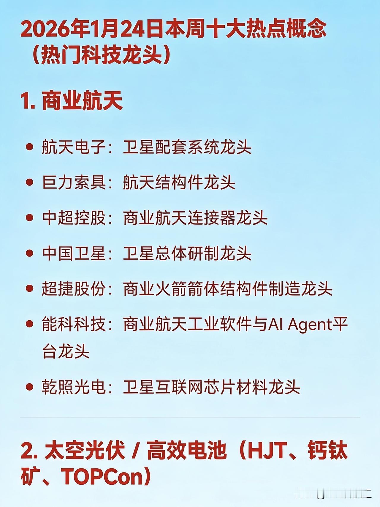 1月25日(周日)热门人气股点评(明日实战版) 核心结论:商业航天+太空光伏+