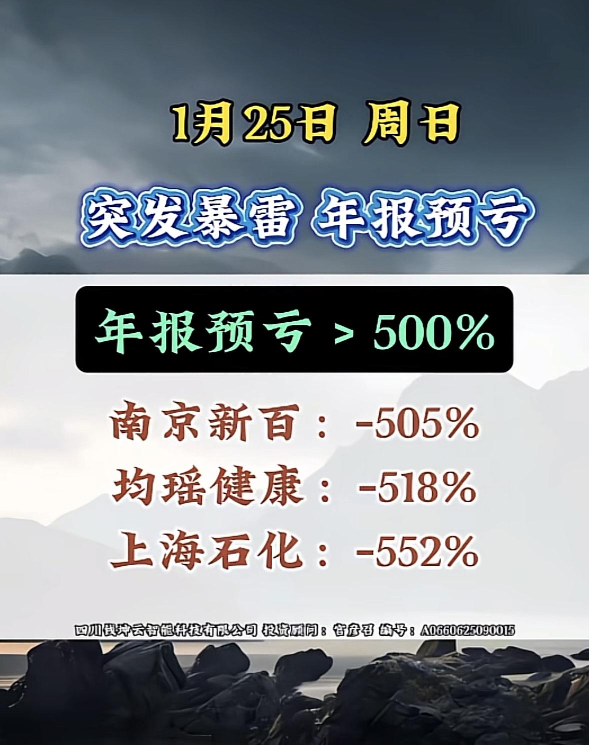 “2025年股市业绩暴跌预警!南京新百、均瑶健康、上海石化大跌超500%!”🌩️💔 "突发年报暴雷!多家企业预亏超预期,投资需谨慎。" 暴雷预警!多家企业年报巨亏,航天、城投板块惨跌,投资风险骤升,市场震荡需谨慎。
