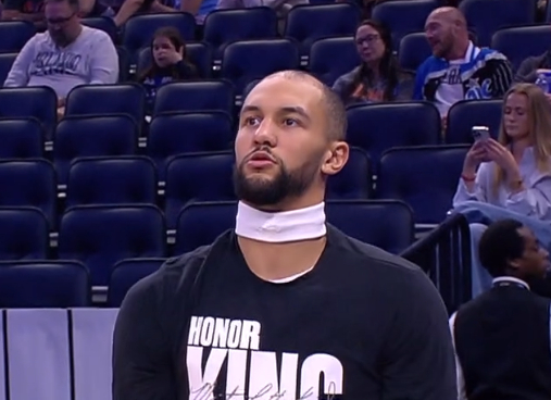 ▲萨格斯现在的头带都戴在脖子上了NBA
