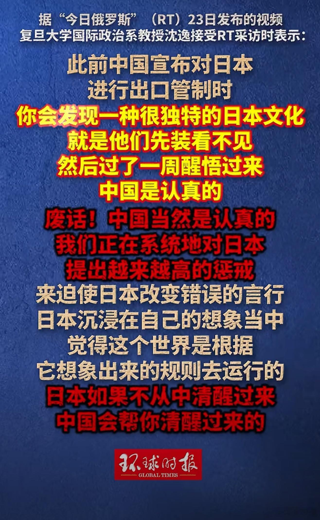 中国对日层层加码惩戒,绝非无端施压,而是对其突破战后秩序的精准反制。重提联合国敌国条款、联合国备案、祭出两用物项出口管制,每一步皆有法理依据、步步有据。日本执意强军扩武、妄议台海、滋长军国野心,触碰红线在先。中方亮明底线,划清禁区,后续所有反制皆依法依规、合情合理。这不是挑衅,而是捍卫二战成果、守护地区和平的必然之举,日方若仍执迷不悟,必自食恶果。中国对日本提出越来越高的惩戒