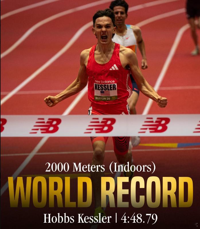 2026年田径大戏超隆重开场 一小时内三人破两项古董级世界纪录!2026年世界田联洲际巡回赛金标赛-新百伦室内大奖赛,北京时间今天凌晨在波士顿顺利开战。尽管只是场地项目的2026年第一场金标赛,但选手的杰出发挥,将比赛迅速拉高到热爆。在一个小时内,两项世界纪录被刷新-男子800米和男子2000米!在首先进行的男子2000米比赛里,美国选手、2024年室内世锦赛1500米季军霍布斯-凯斯勒在最后半圈发起冲击,他以4分48秒79的成绩打破了埃塞俄比亚选手肯尼萨-贝克勒在19年前跑出的4分49秒99的前世界纪录。拿到亚军的格兰特-费舍尔(3000米室内世界纪录保持者)也有4分49秒48的成绩,两人赛后都很兴奋。贝克勒的这个保持近20年的纪录,一下就被两位选手打破。2000米是世界田联承认纪录的项目。但在奥运会、世锦赛和室内世锦赛里不设这个项目,常规的国际大赛基本上也没有。讲究点的话,官方得用“世界最佳”,而不是“世界纪录”这个词。新百伦室内大奖赛让这个项目和跑这个项目的选手有了亮眼的机会。接着进行的就是世界大赛的传统常规项目-男子800米。去年的南京室内世锦赛该项目冠军、美国选手乔什-霍伊跑出了1分42秒50,打破了丹麦选手威尔逊-基普凯特在1997年创造的1分42秒67的世界纪录!时间跨度28年!霍伊以往的最好成绩是1分43秒24,同时也是北美洲纪录。在南京夺冠的成绩是1分44秒77。这次直接进入1分42秒大关。这场比赛担任兔子选手的,是霍伊的哥哥贾克森。他做了非常好的引导,让弟弟在最后开冲前达到足够的速度。乔什-霍伊赛后说:“我们做了很多配速训练,稳步提升,一点点推进,最终这一切实现了。“现在我们才接近起点,远不是征途的终点。”田径世界纪录田径世界纪录