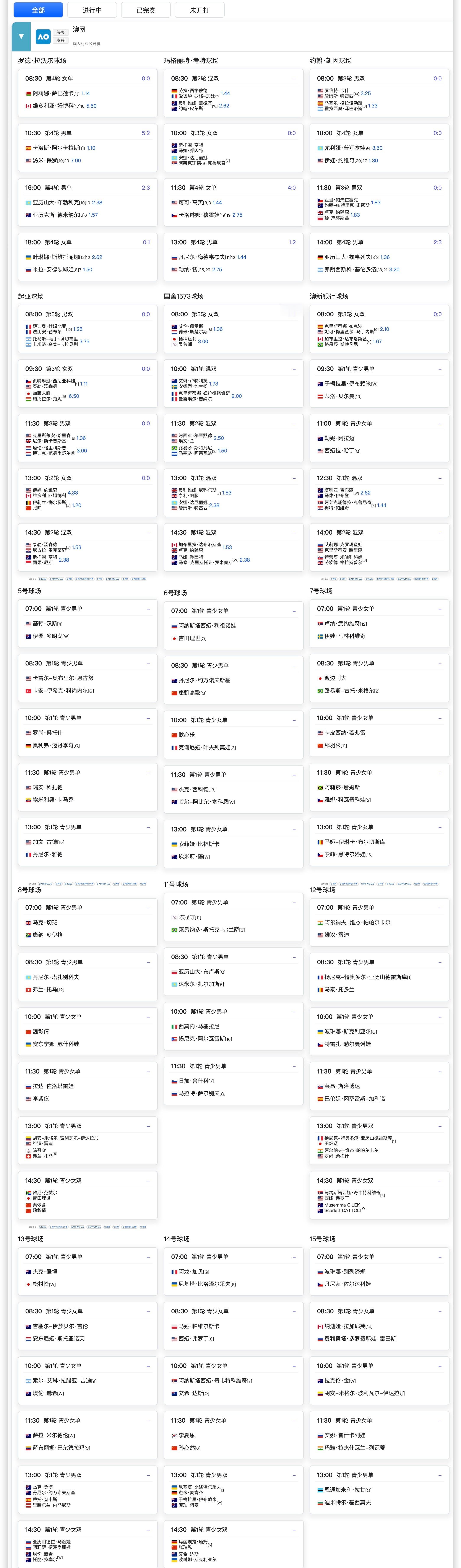 【澳网2026 第8️⃣比赛日赛程(1月25日)】🇨🇳中国力量起亚球场第四场:张帅女双第二轮孙心然、耿心乐、邵羽杉、魏彰倩、康凯高歌出战青少年组比赛💰有钱梅钱回家过年组考特球场第四场:梅总和钱同学不出所料被分到最后一场,不影响任何球员,可以磨到明天早上㊗️福星组罗德·拉沃尔球场第二场:看阿卡能否延续大满贯击败保罗就夺冠的势头考特球场第三场:看高芙能否延续击败穆霍娃就夺冠的定律其余球员赛程请见图2,具体开赛时间关注前续进程⬇️