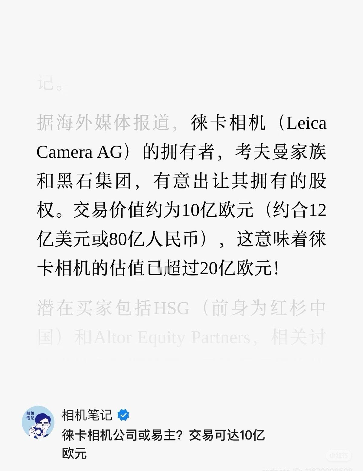 黑石集团考虑出售徕卡相机!建议小米考虑一下直接买了