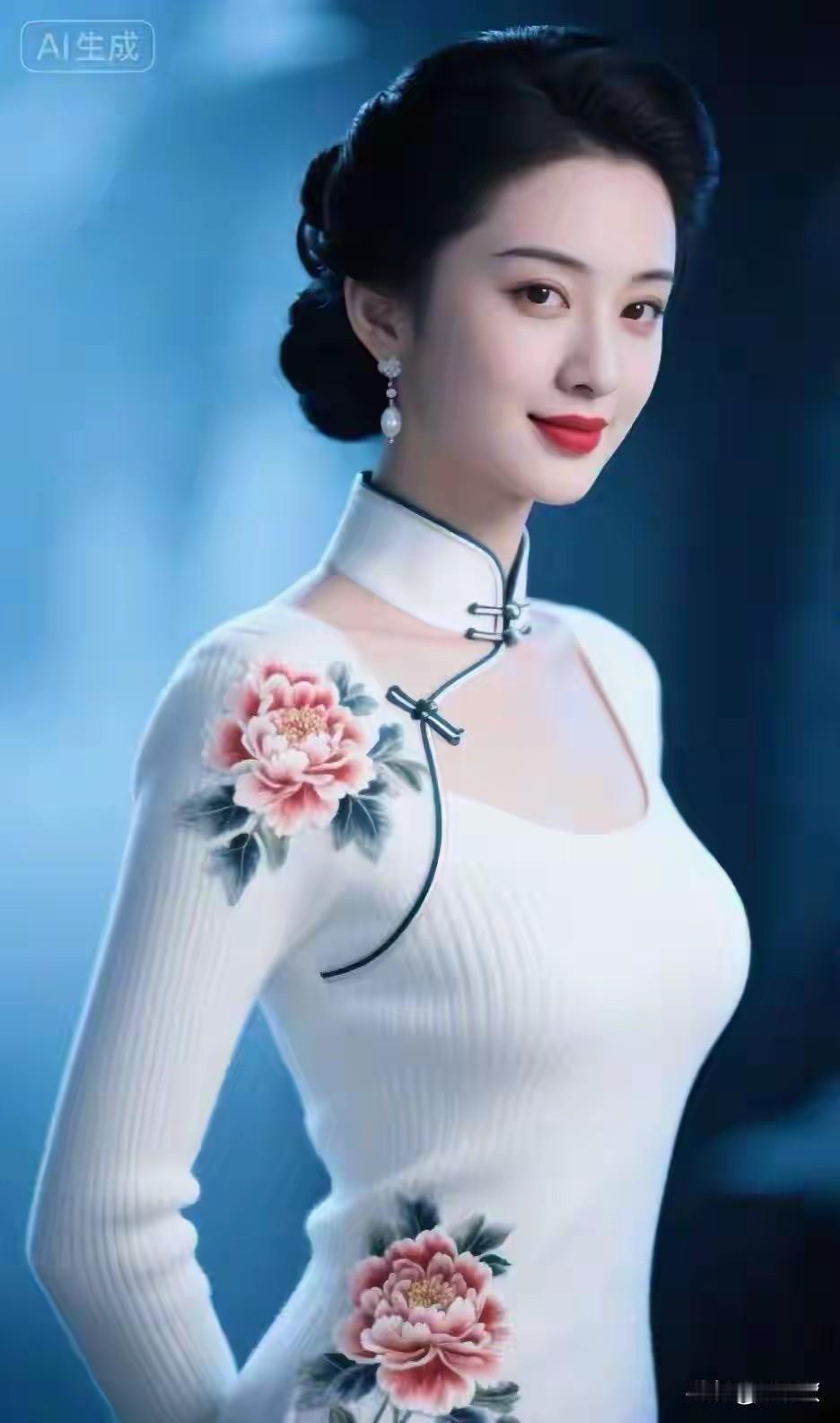 中国旗袍,百年传承。 文化底蕴,经久不衰。 贴身裁剪,凸显性感。 东方美人,青春靓丽。 美丽大方,优雅知性。 千娇百媚,仪态万方。 旗袍雅致韵味生 , 白底牡丹显风情。