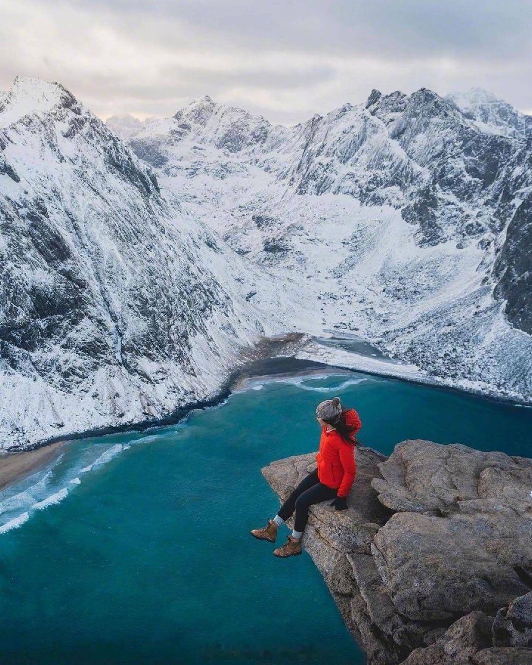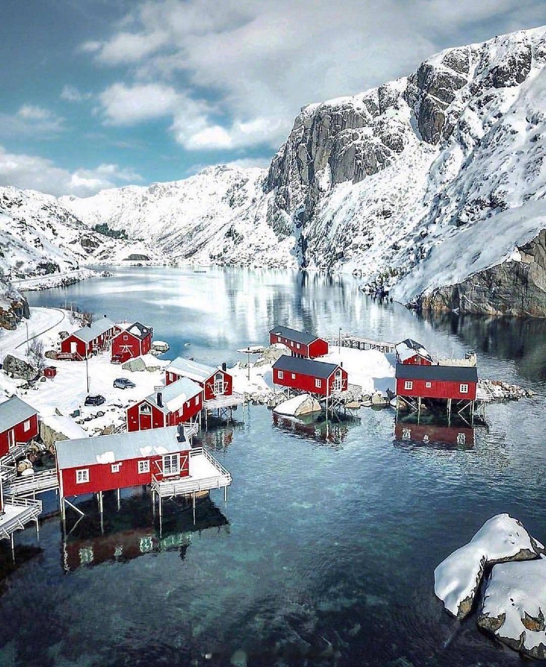 【这里是挪威】冬天绝不是黑白灰,除了光影,还有建筑的颜色、自然的颜色,以及身处此地的你。源自:挪威国家旅游局