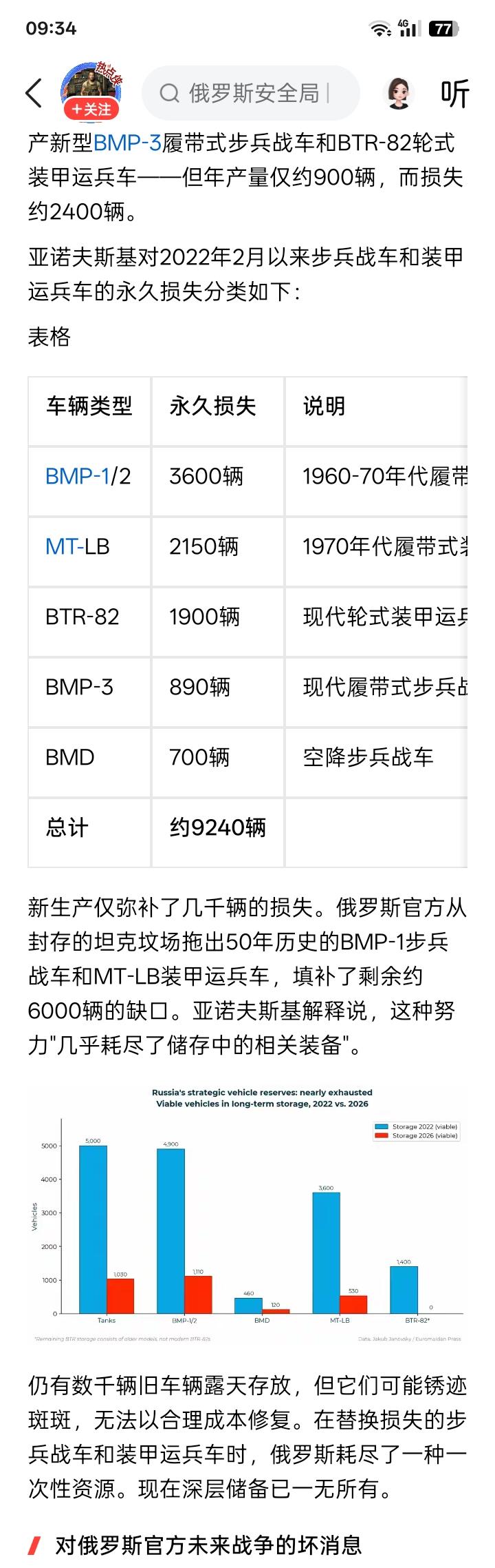 能攻城占地吗? 网络上有文称,根据统计,俄罗斯在对乌克兰的不足四年的战争中,已经损失了大约9200辆装甲战车和装甲运兵车。这就是说,俄罗斯军队每年损失的装甲车平均在2400辆左右,而俄罗斯每年仅仅能够制造生产大约900辆新的装甲车,提供给前线部队用于作战。当然,这损失的9200辆装甲战车和装甲运兵车,主要是前苏联的遗产。但据传闻说,前苏联遗留下来的装甲车,现在已经基本上消耗殆尽。 假如最终俄罗斯军队在战场严重短缺装甲车,甚至是步兵进攻中根本就没有了装甲战车和装甲运兵车的帮助,俄罗斯军队的进攻还能继续持续下去吗? 网络上有相当一些俄罗斯步兵骑马、骑摩托车向乌克兰军队阵地进攻的画面和视频,但大多的结果是个什么样子,估计很多人已经心知肚明,清清楚楚。实际上,无论是骑马、还是骑摩托车进攻作战,与被装甲战车或被装甲运兵车帮助和保护运送,根本就不是一个档次。因为在炮火连天,弹片和子弹纷飞的战场上,仅仅是驾驭马匹和驾驶摩托车,本身就是一个极大的挑战和危险。