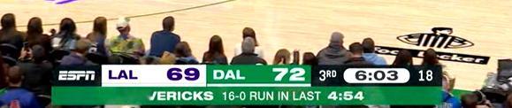 ▲湖人被独行侠在5分钟内干了个16-0NBA