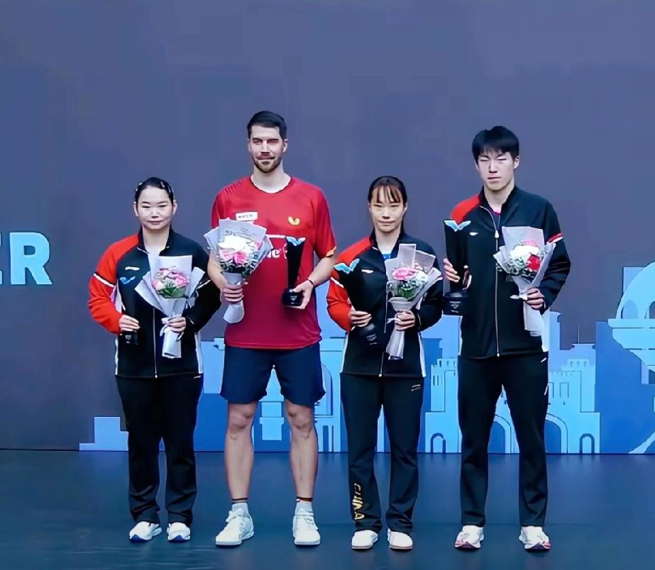 马斯喀特站这波领奖台合影,我能看100遍! 救命!这张合影也太养眼了吧! 男单冠亚军温瑞博和弗朗西斯卡往那儿一站,1米86+1米90的身高直接把气场拉满,一个俊朗冷峻,一个成熟有型,颜值和实力都在巅峰。 另一边的石洵瑶和何卓佳也超亮眼,小个子有大能量,稳稳拿下女单冠亚,红黑战袍一穿,又飒又美。 这一站国乒包揽了所有项目冠军,领奖台上咱们的选手占了半壁江山,看着就觉得踏实又骄傲!💪 💬 你觉得这张合影里谁的状态最戳你? WTT马斯喀特 温瑞博 石洵瑶