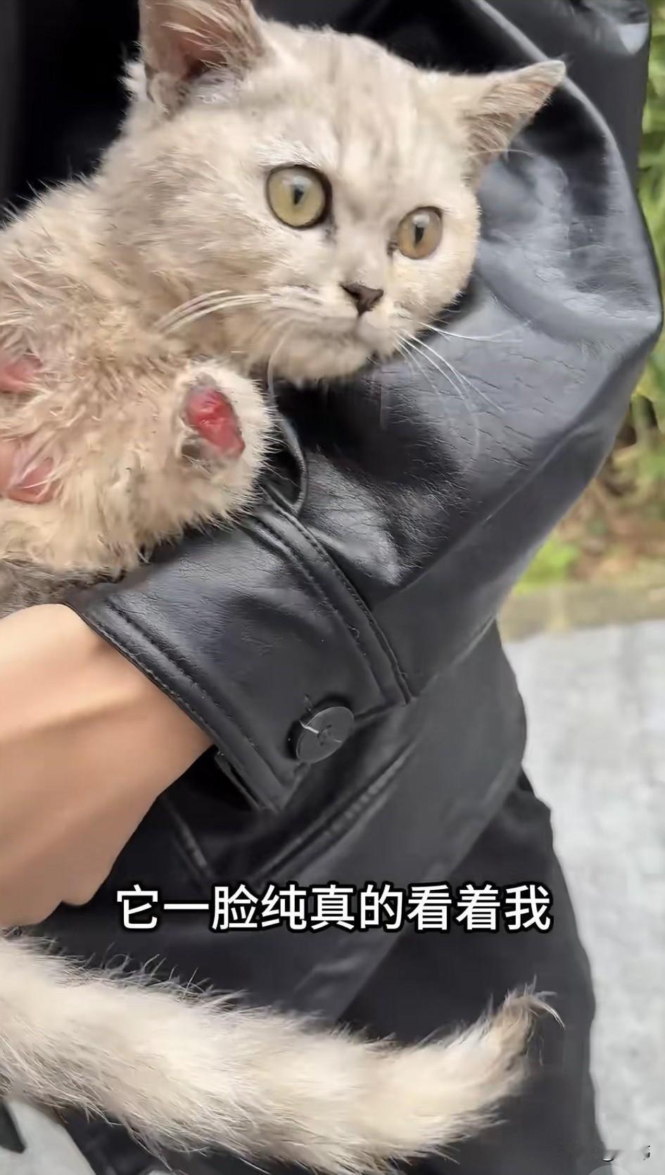 泪目了!这天一位小哥哥去公园散步,结果当他走到一条人工河附近的时候,看到了无比凄惨的一幕,一只可怜的宠物小猫被人切掉就两只前爪,然后遗弃在那里。虽然有人如此残忍地对待它,可它已经和亲人,看到小哥哥它还跑到他面前甜甜地叫着,善良的小哥哥顿时心生怜悯之心。 他拿出食物投喂它,然后把它抱了起来,它还一脸纯真的望着小哥哥,所以它还是很信任人类的,怎么会人这么狠心对待这么乖巧的猫咪,好心的小哥哥把它送去了宠物医院治疗。可遗憾的是它的爪子不见了,只能把它包扎一下,而且要定时换药。小哥哥只好把它带回去收养,相信在他的照顾下,猫咪也会越来越好。