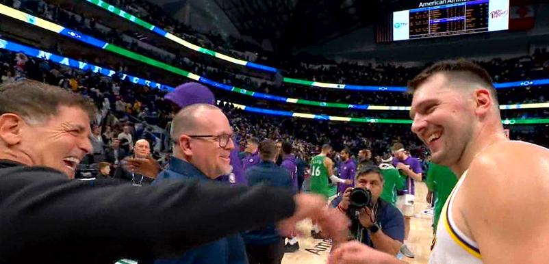 ▲东契奇和库班的关系依旧还不错NBA