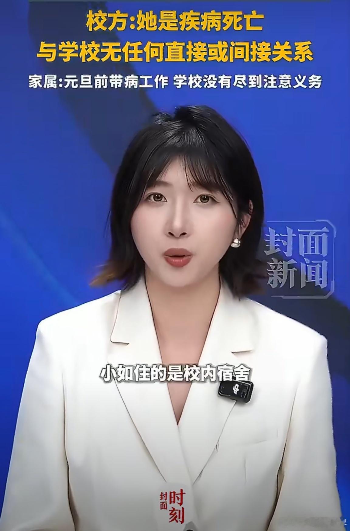 校方回应女教师病亡2天才发现生命比工作更重要!这个女教师才25岁,工作应该时间不长,家长对她的未来抱有很大的期望,结果工作没几年命没了!对于哪个家庭都不可能接受!对于学校而言,疏松的管理虽然有助于教师的工作,但是两天教师没有去工作,确实应该有提醒的义务,至少通知家人! 济宁
