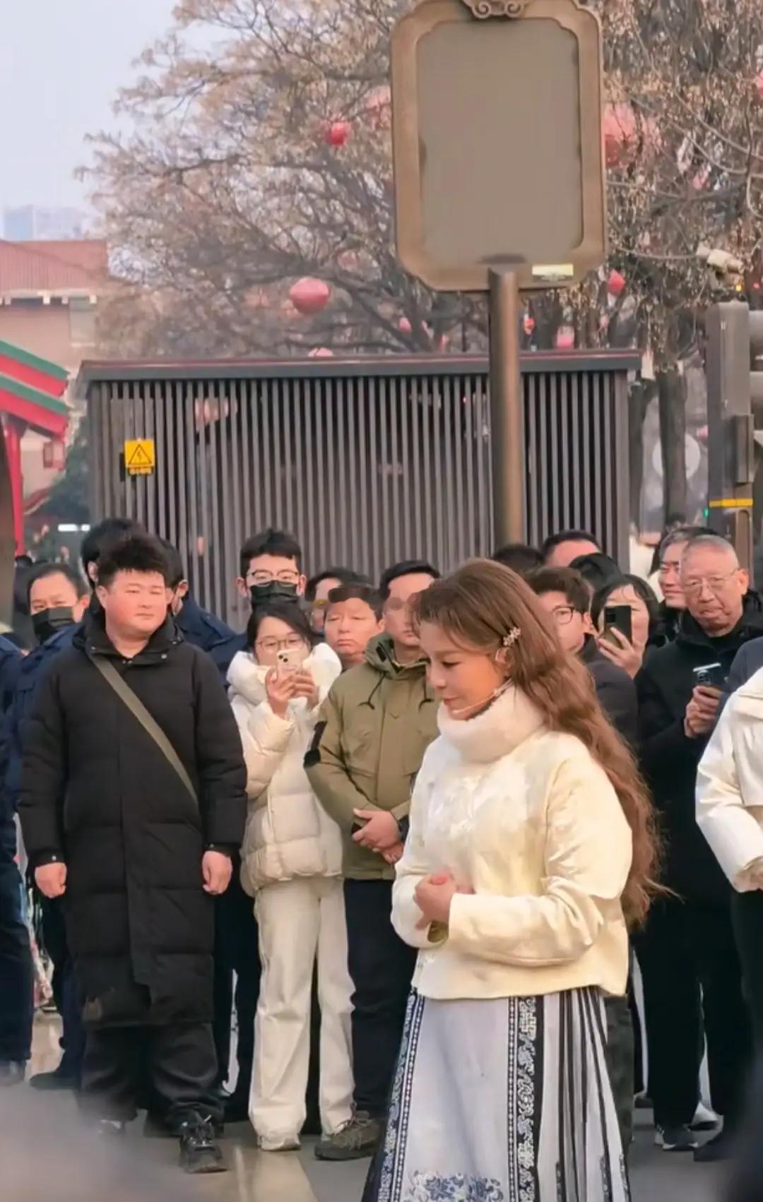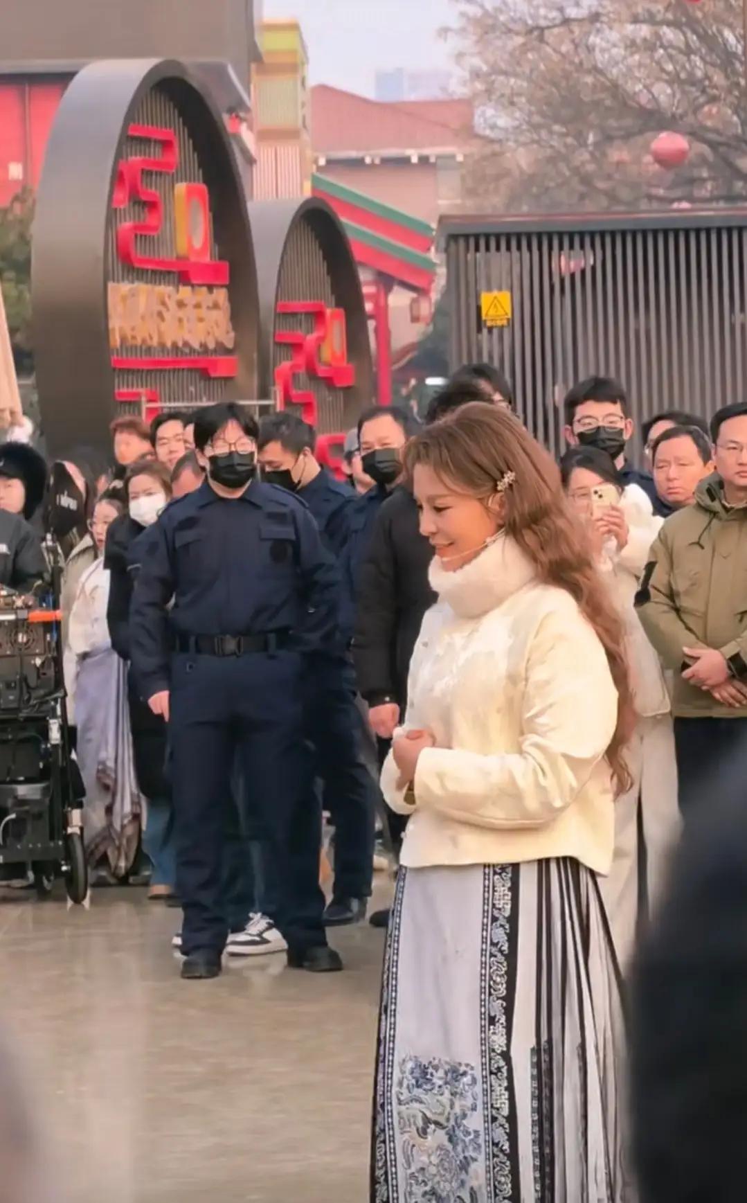 朱迅在西安大唐不夜城身着古装录节目,衣袂飘飘似从古画走出,眉眼间透着温婉古韵,气