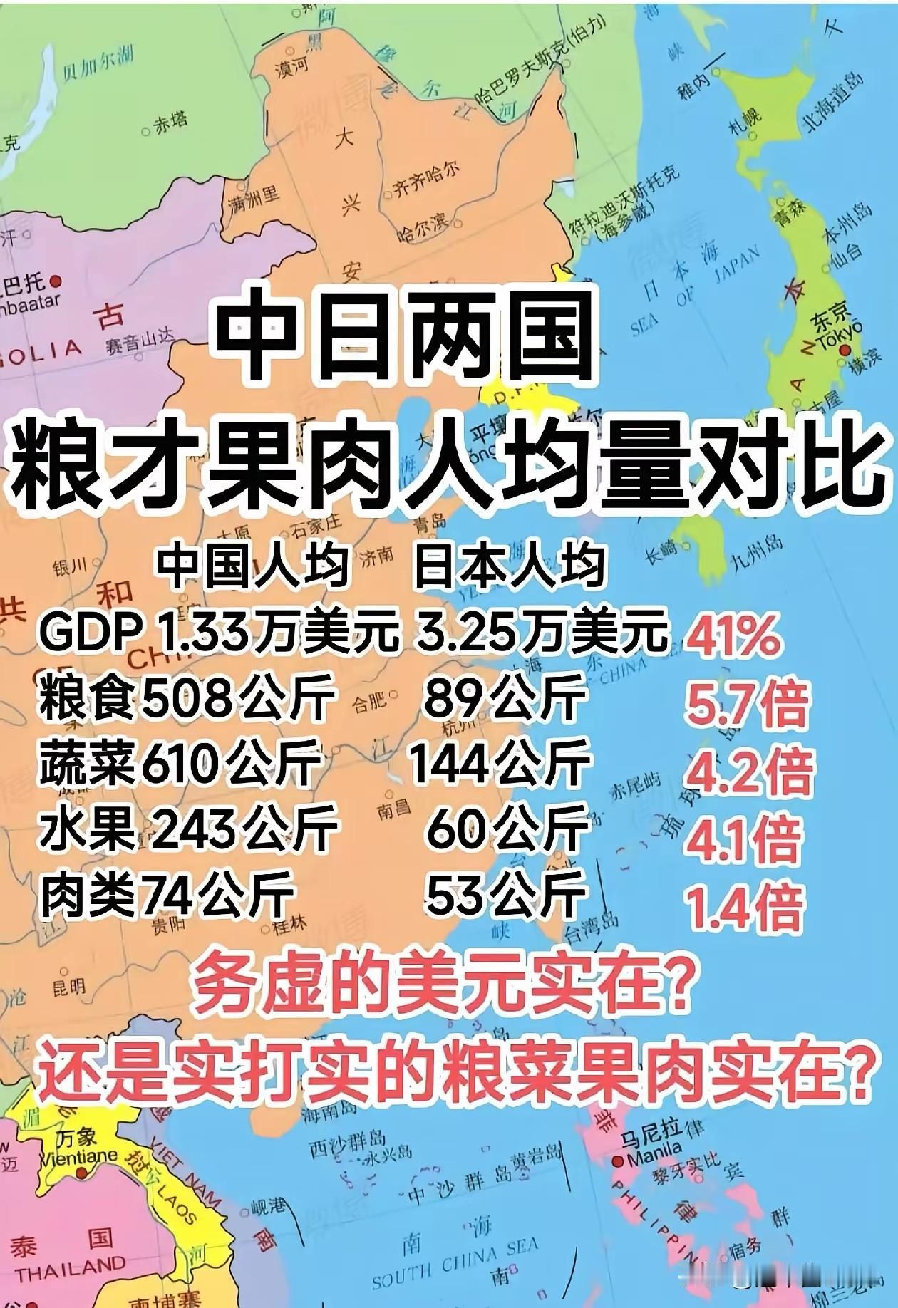 2010年之后,在各类总量比拼中,中国都全面超过日本,如今在人均比拼中,中国同样碾压日本,日本还有什么可以骄傲的?作为战败国的小日本,本来是要中英美苏驻军的,如今只有美国驻军了,美日反而成了盟友,日本只能绑美国的大腿,充当反华的急先锋,殊不知,日本只是一颗棋子,被卖了还要帮美国数钱,想要遏制中国的发展壮大简直是痴心妄想。