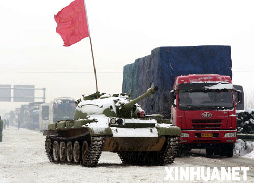 发一些老图,2008年南方冰冻灾害期间,广州军区的装甲部队出动62轻坦,63装输和84式装甲抢修车碾碎京珠高速等重点道路上的冰层,开辟后续救援通道,并为交通不便利的偏远地区运送物资。小的时候看新闻联播,对在高速路上闪转腾挪的63装输印象深刻。今年又赶上一波大的寒流,重温一下,这已经是18年前的事情了。