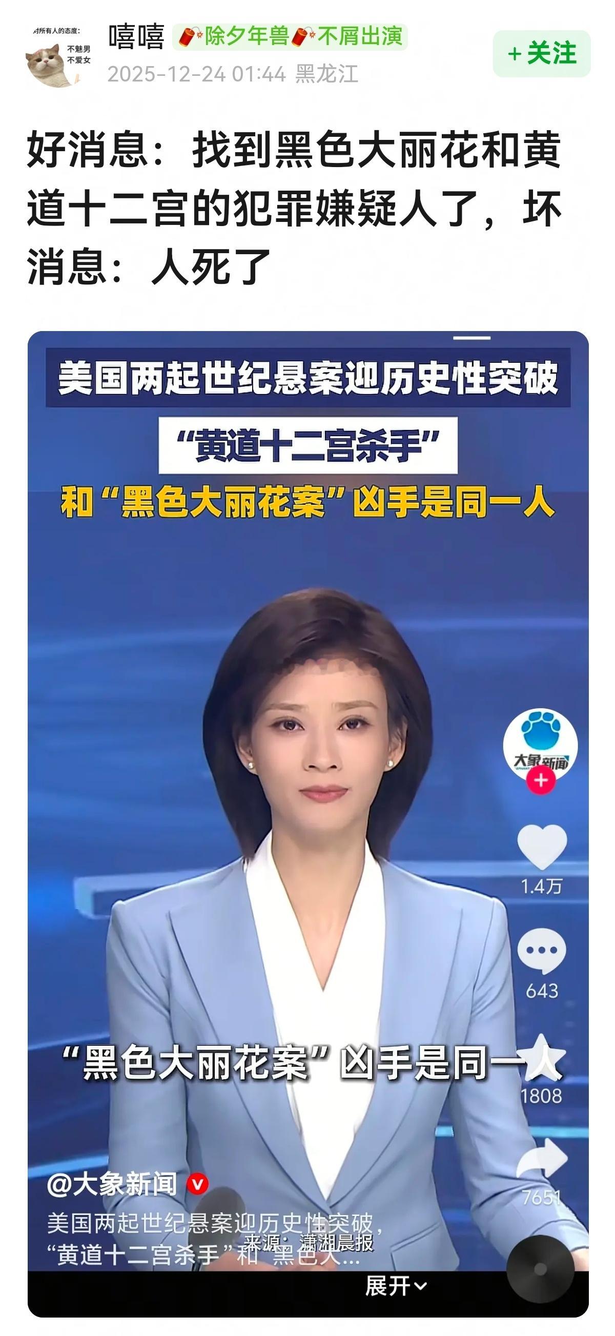 好消息:找到黑色大丽花和黄道十二宫的犯罪嫌疑人了,坏消息:人死了