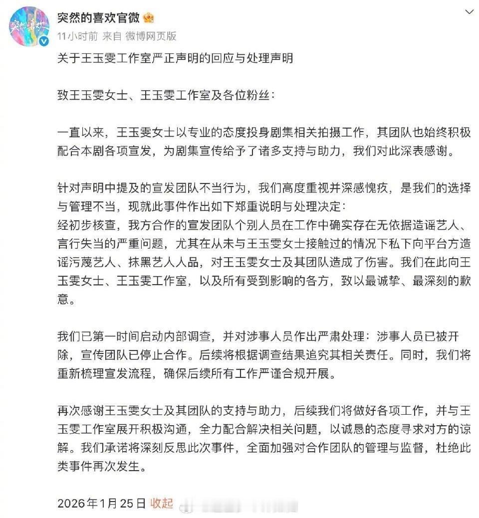 王玉雯体面人 这件事让人看到,什么叫“专业”和“体面”。王玉雯和团队的做法堪称范本:面对谣言,不回避不姑息,以保护演员声誉为先;在维权的同时,又能顾全大局,将对作品的伤害降到最低。接受道歉,承诺继续配合宣发,每一步都冷静、清醒且有力量。