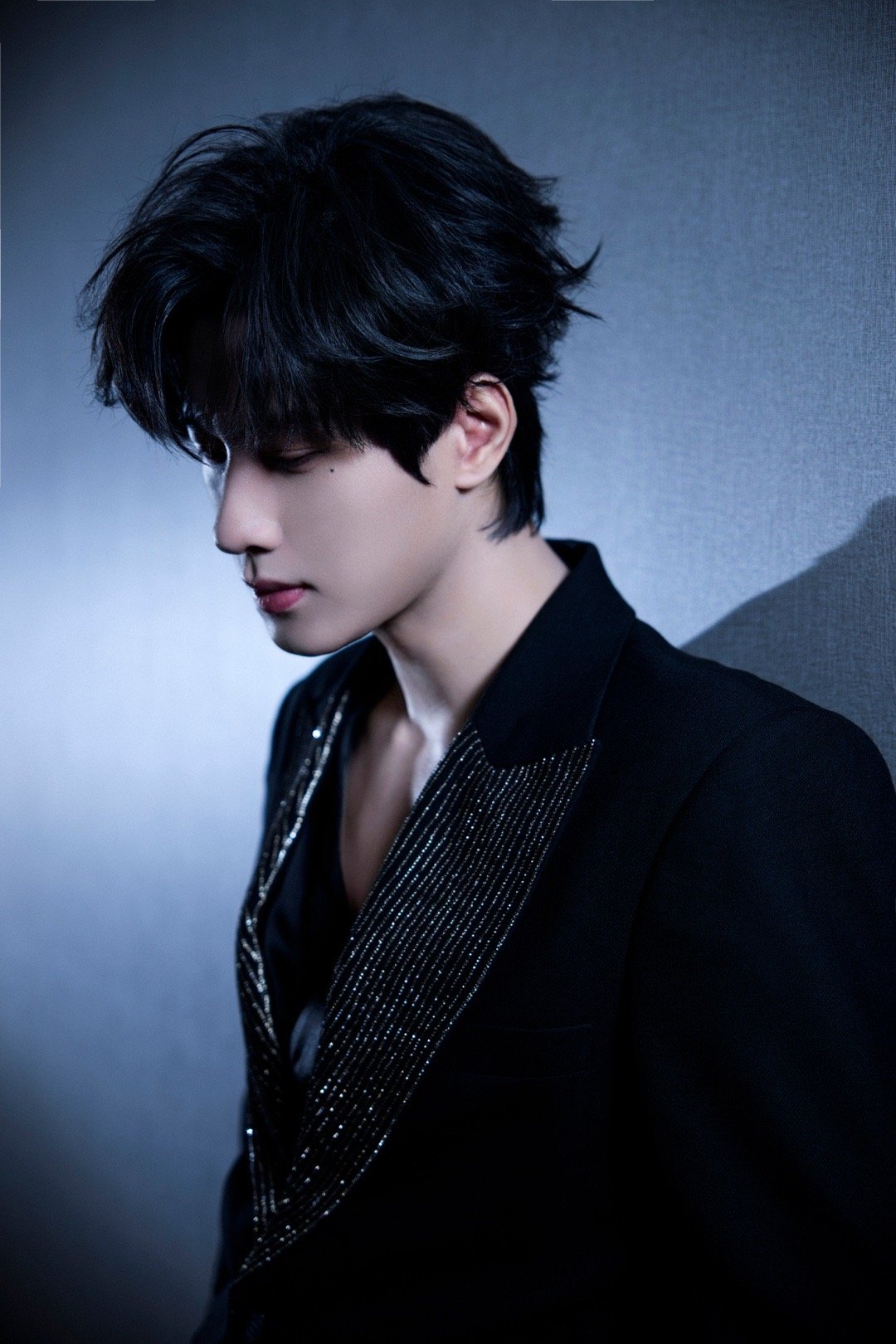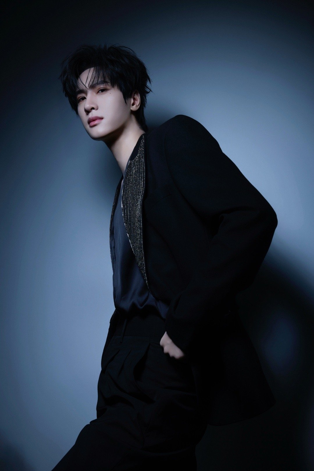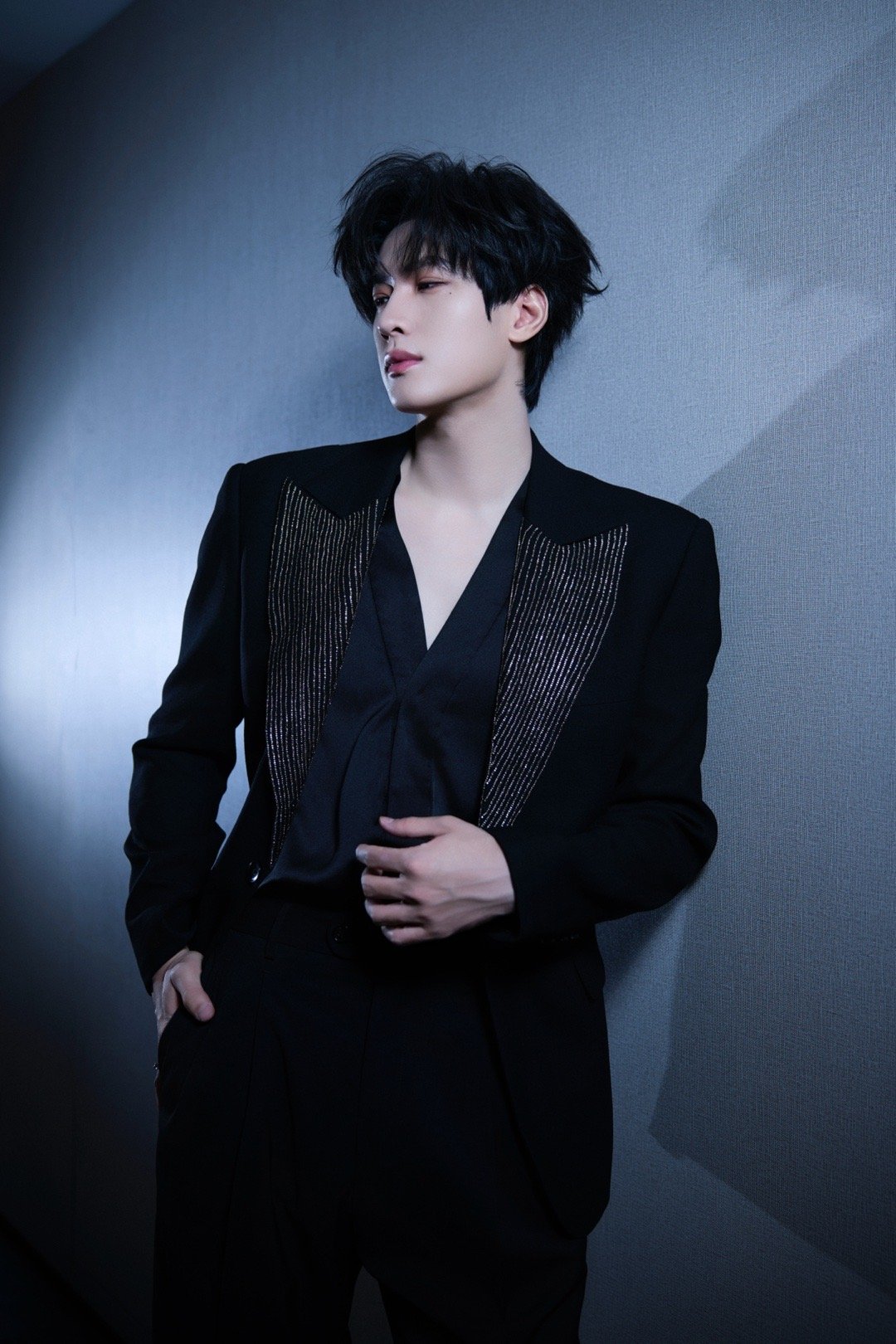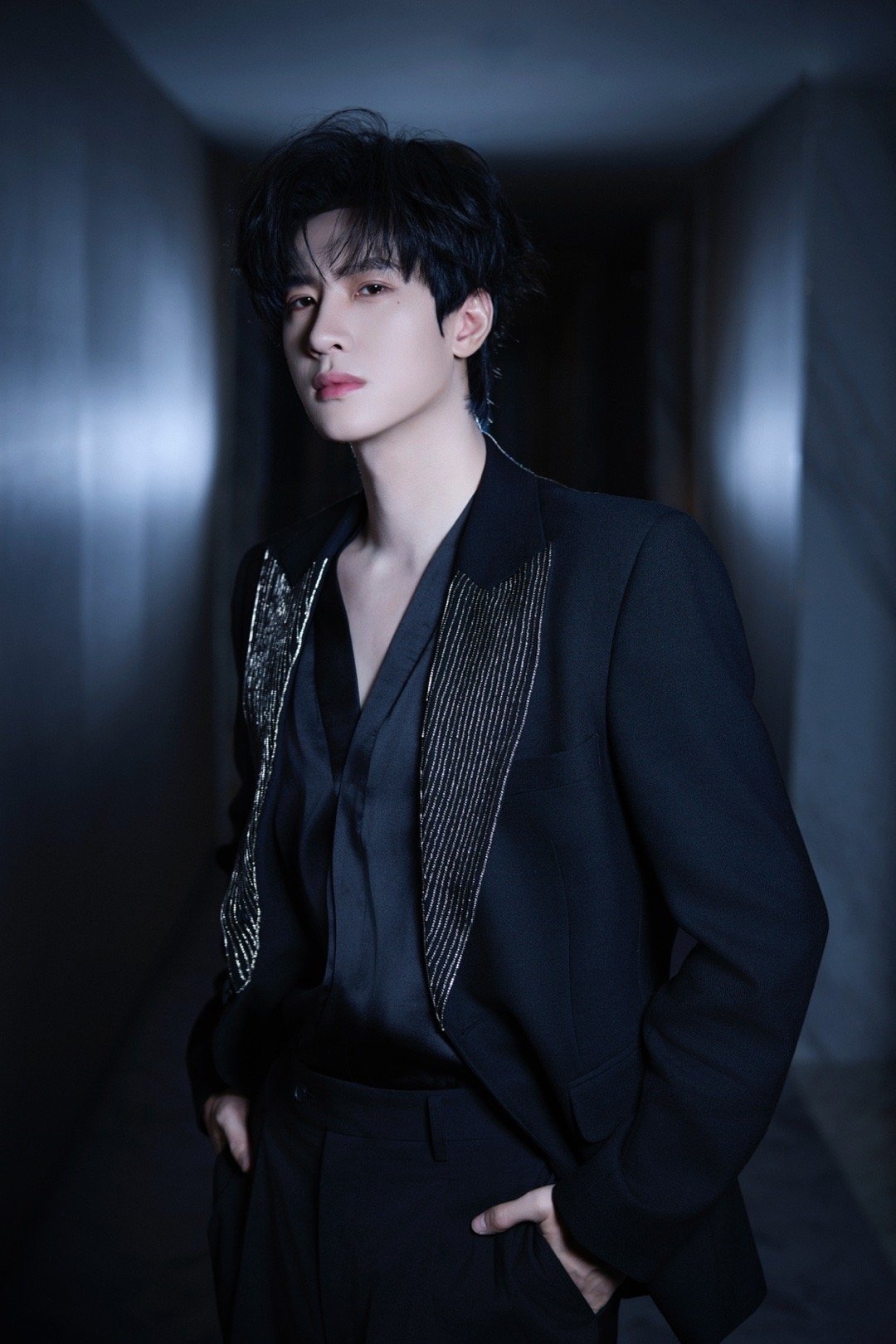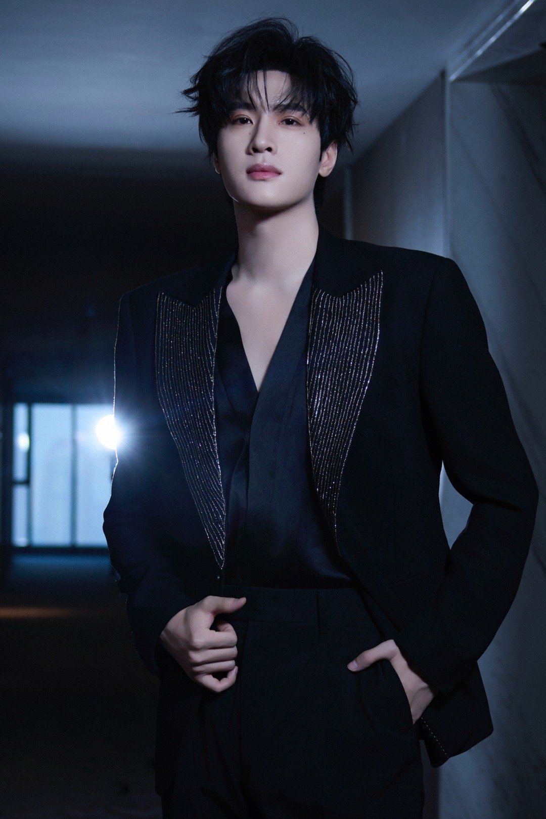 展轩📸钻饰衣领性感深V光影勾勒冷峻锋芒很有型的一套Look✨