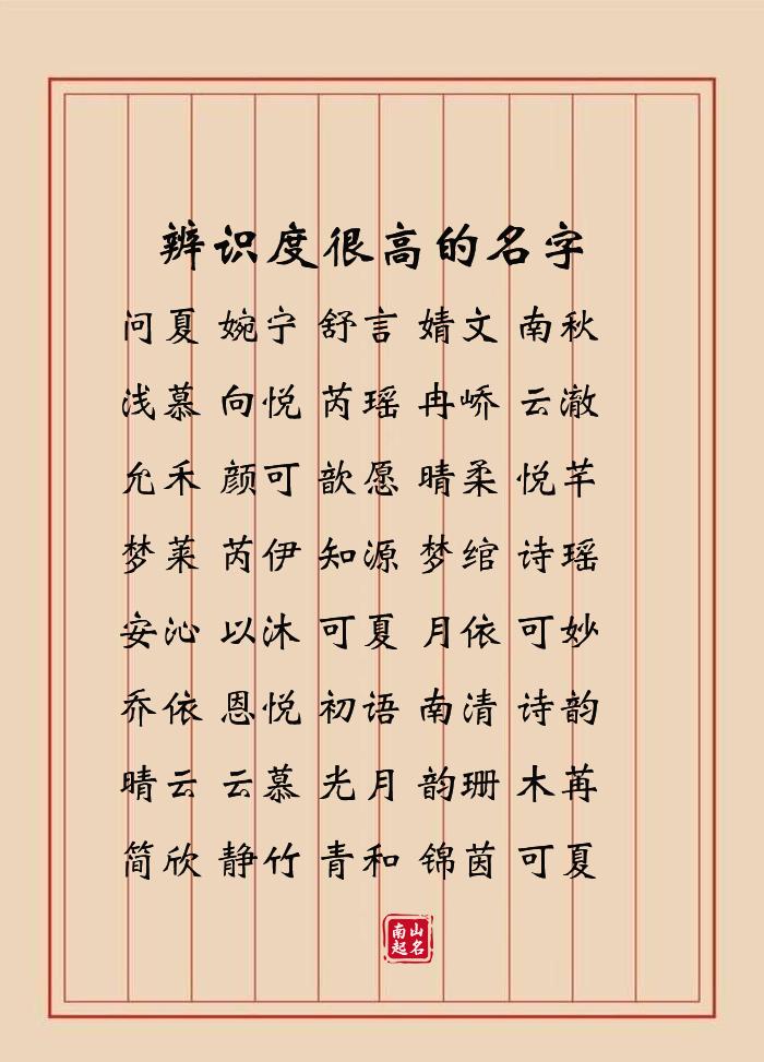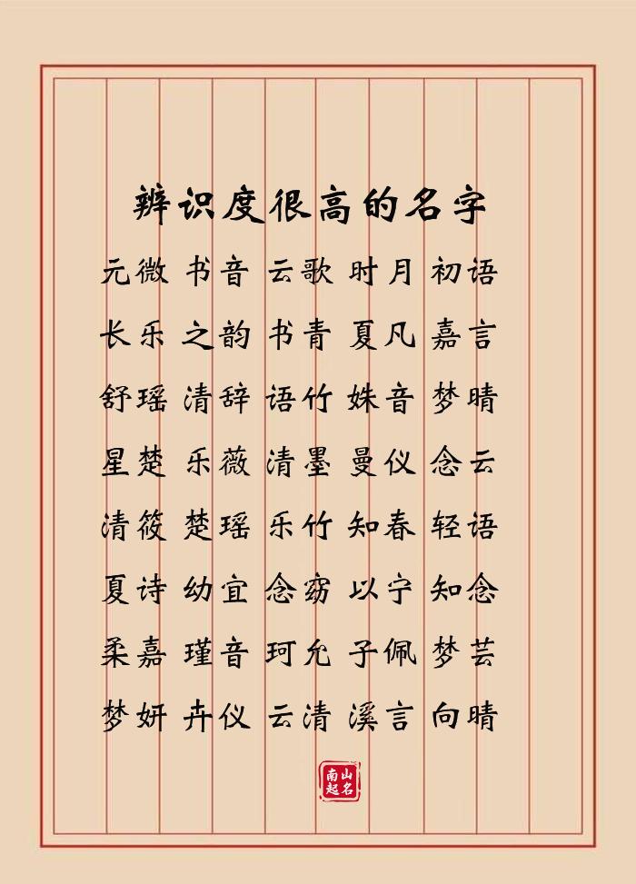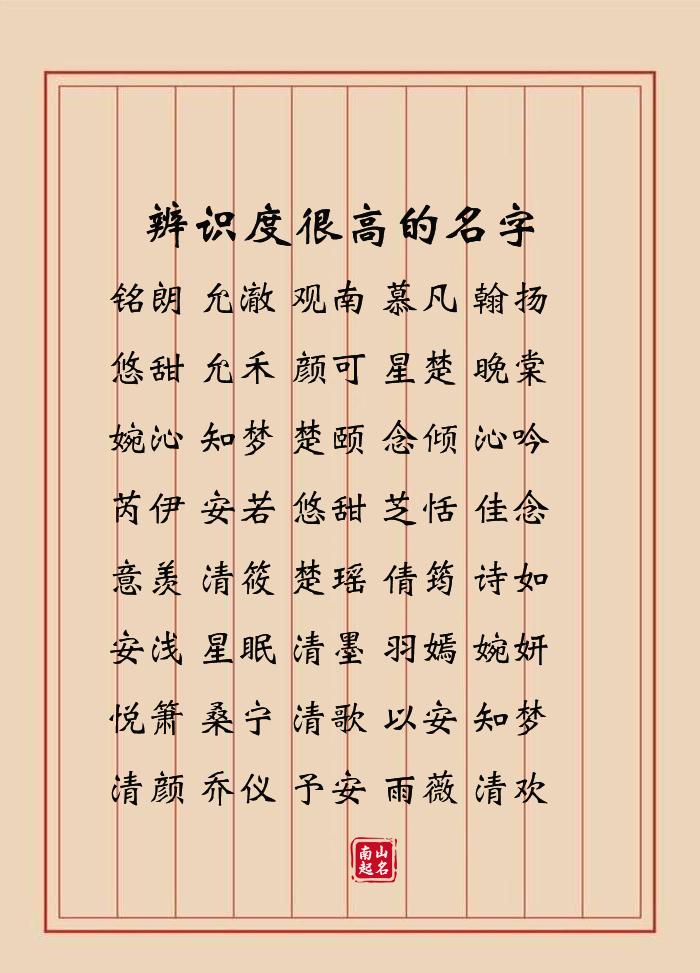 辨识度很高的名字,语笑嫣然的女孩名,豁达自信的男孩名