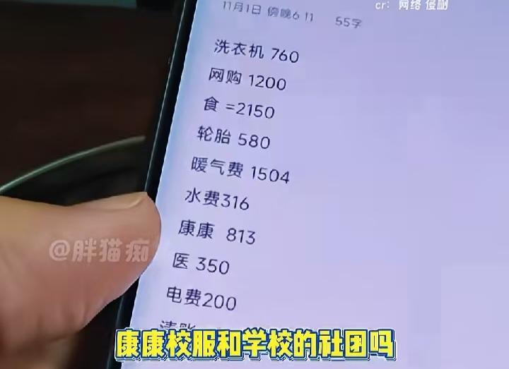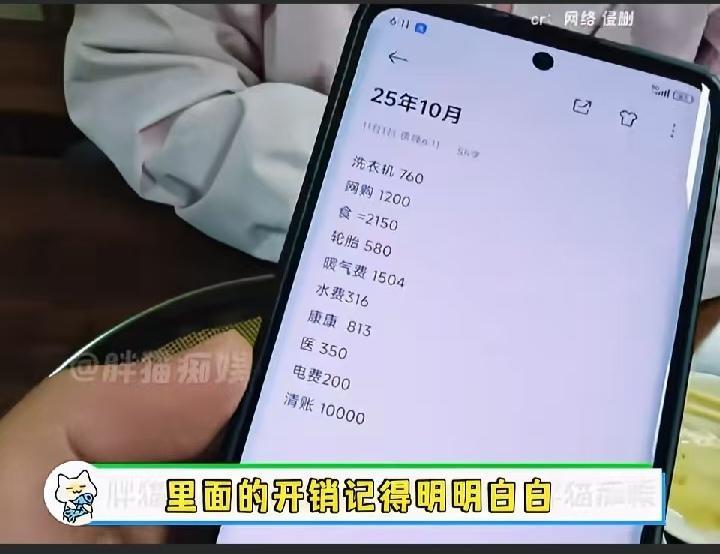 这位全职妈妈过的还不如保姆,33岁的年龄已经白发这么多,沧桑疲惫的脸也看着比同龄人显老,她全心全意的操持家务照顾孩子,丈夫却对她不停指责 丈夫指责她:我挣8000你就花8000啊!她小心翼翼的拿出账单,每一次花销记得清楚明白 丈夫的指责没有停:洗衣机要花760?网购什么了花了1200?吃的要花2000吗?这个康康813是什么? 得知网购1200是给孩子买了新衣服,又开始数落,以前买了那么多衣服了,怎么还买?妻子小声辩解,孩子长的快,之前的衣服小了 家务的繁琐最是消磨人,她才33岁,看起来一脸沧桑,她平时在家里的劳动付出,按照市场价值来算,远超过8000了吧,可就因为她全职在家,丈夫看不到她的价值,她活的小心又卑微 花销8000的账单里,没有一笔是给她自己单独买的,都是给家庭、孩子的支出,可这换不来丈夫的理解,婚姻里最怕这样,把另一半的付出当成理所当然。他会高喊自己赚钱养家的辛苦,不会想到是妻子的默默付出,稳定了家庭大后方,他才能安然上班赚钱 替这个全职妈妈感到心酸,希望她能越来越好
