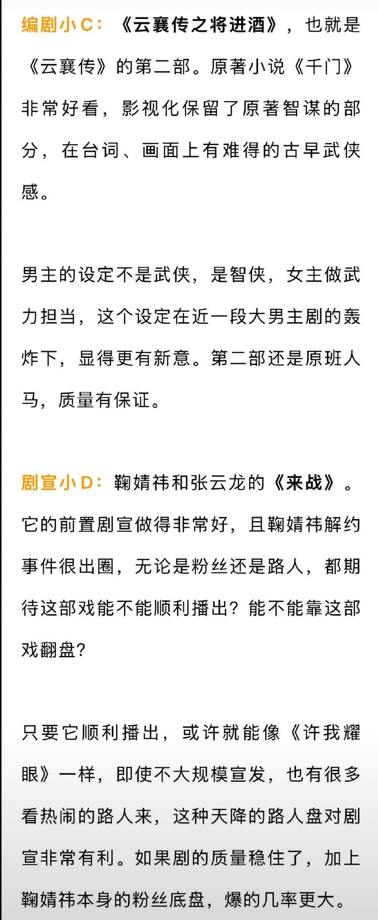 业内最看好的待播剧ip:何不同舟渡剑来来战