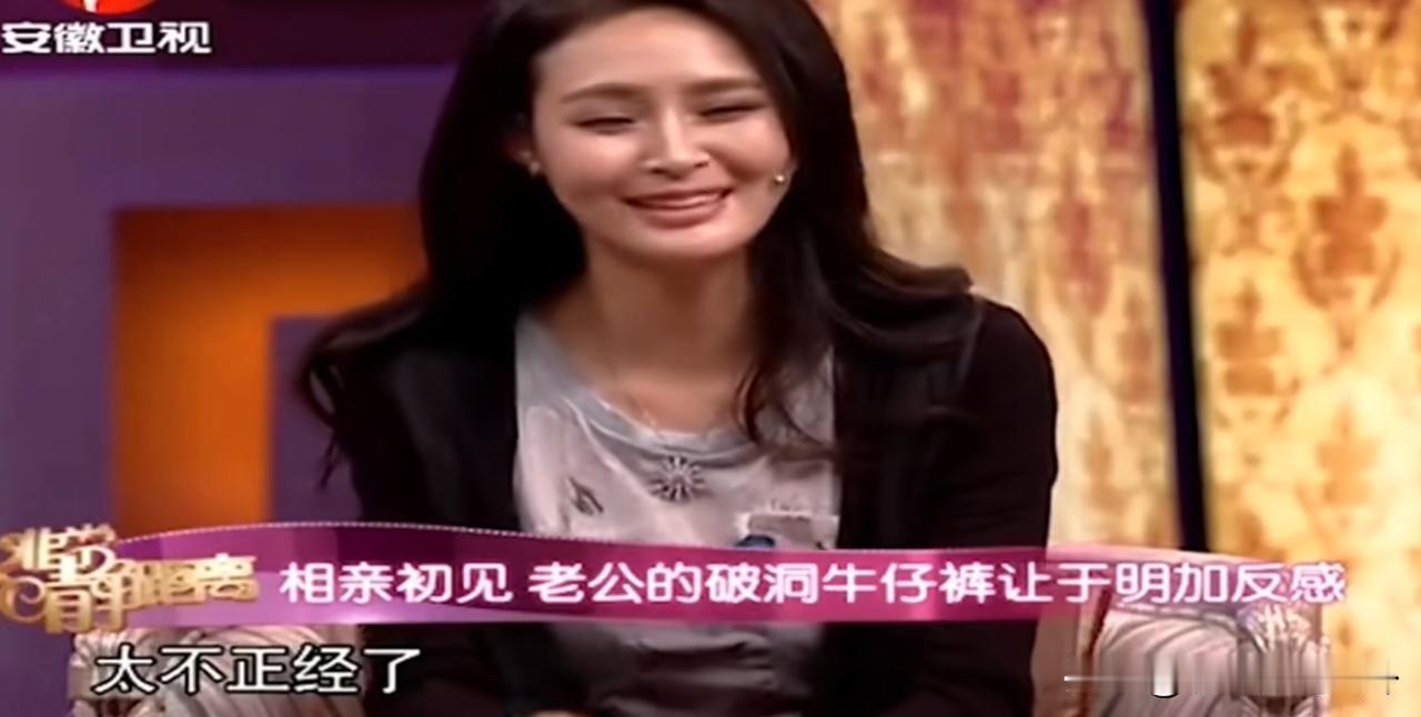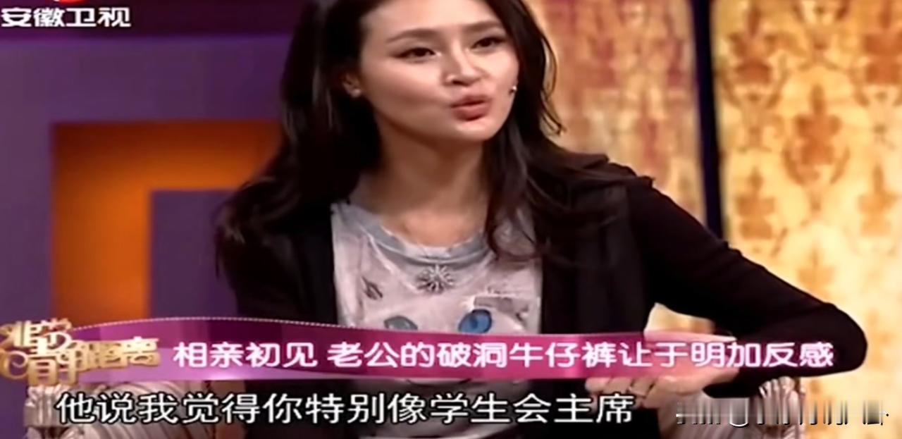 于明加说:“我跟我老公第一次相亲见面时,我穿着一条长裙,而他穿的是破洞牛仔裤,我就觉得太不正经了,跟我爸说可以成为朋友,但绝不会成为男女朋友,我跟介绍我们认识的阿姨说不合适,结果她却跟我老公说我对他印象很好,又跟我爸说,我老公对我很满意,她是两头说,不过我老公当时对我印象确实不错,觉得我像学生会主席,特别正统。” 于明加是个大美女,当时追求她的人很多,爸爸给她的建议是“普遍培养,重点提拔”,也就是多跟异性相处,然后从中选择自己喜欢的去发展,这其中也少不了相亲阿姨的助攻。
