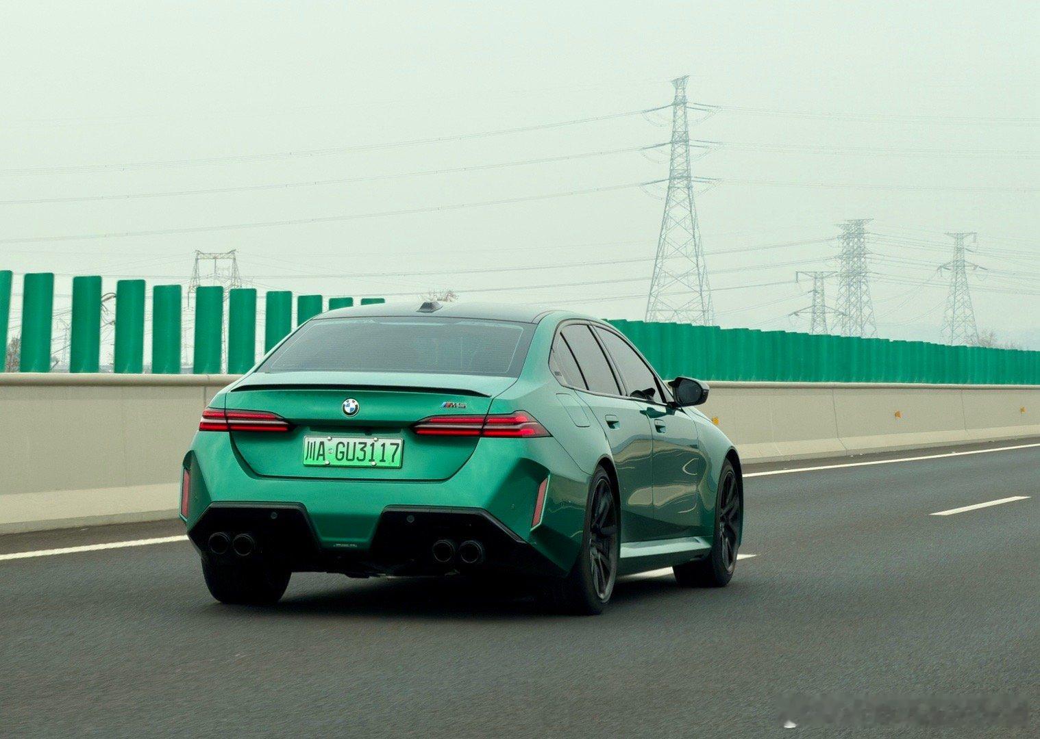 巴伐拉亚大秤砣-宝马M5,绿牌和曼岛绿的颜色还是挺适配的,从后视镜看上去压迫感还是强大!宝马m5米帅的车生活 德阳