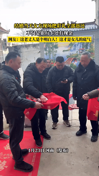 河南,一对新人结婚时,为了女儿嫁过去不受欺负,女方的父亲当着所有亲戚和男方家属的面,把彩礼全部返还。其中包括银行卡和现金!网友:“这老丈人是明白人,这才是女儿的底气” 这事发生在河南一对新人的结婚现场,女方的父亲怕女儿嫁过去受欺负,就让亲戚端来新郎家给的彩礼,当着所有人的面亲手还给了亲家! 其中就包括20万的银行卡,还有4万元现金,以及当天的陪嫁费3万8! 视频发到网上后,网友纷纷炸锅了! 有网友评论,这样的父亲才真的断了女儿的退路,为了自己的所谓虚名 还有网友评论,这个新娘嫁到新郎家后,绝对受到男方全家人的爱戴,同时也有一定的话语权,点赞! 不知道钱退回到谁的手里了,如果是亲家的手里,我是感觉不合适的,如果钱退到女儿手里,让女儿保管,适用于婚前财产,如果两人过的好可以拿出来做生意啥的都行,过不好拿钱走人。 这个老父亲为了自己的名声,把女儿的幸福想的很重,让女儿自己保管才最稳妥!
