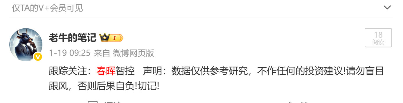 告别盲目投--资!跟上老牛,抓准市场风格切换!老牛帮你稳住投资节奏!2025年12月9日跟踪关注的:迈为股份 周五收获了 20cm 涨--停!股价已经来到了 324元了!2026上1月20日跟踪关注的:德恩精工 周五也收获了 20cm 涨--停!1月19日跟踪关注的:威唐工业 和 春晖智控 周五同时都迎来了大--涨!1月22日跟踪关注的:顶固集创 周五也收获了大--涨!1月20日跟踪关注的:渝三峡A 周五也收获涨--停! 一份信任,一份收获!实力无需多言!认可老牛实力的朋友,来一波 点赞评论 888 !关注老牛,每天都有大--牛奉献!金价 $上证指数 sh000001$