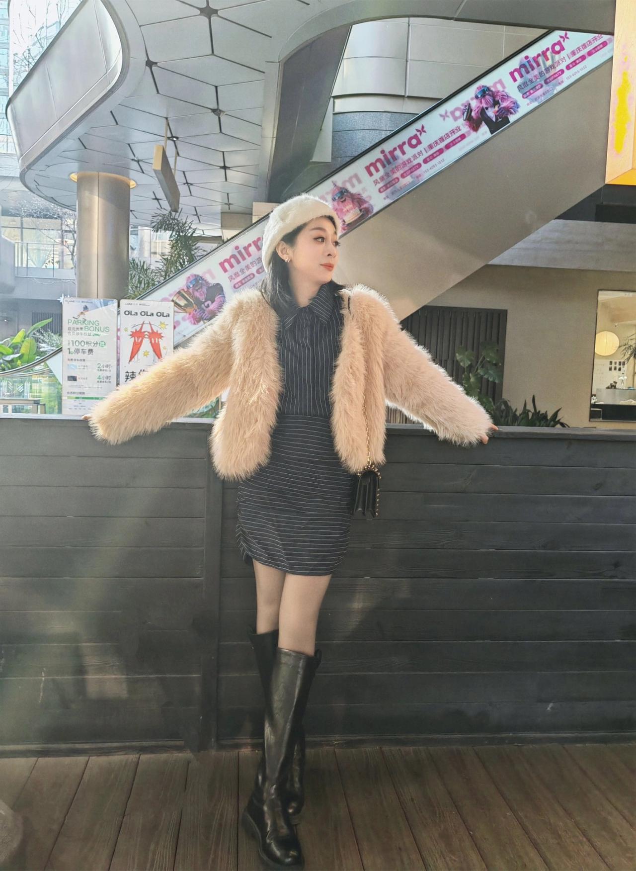 分享秋冬穿搭貂绒配皮靴,原来越有。够黑穿搭,哥哥最爱。