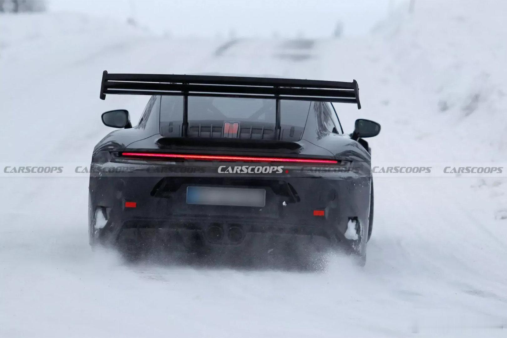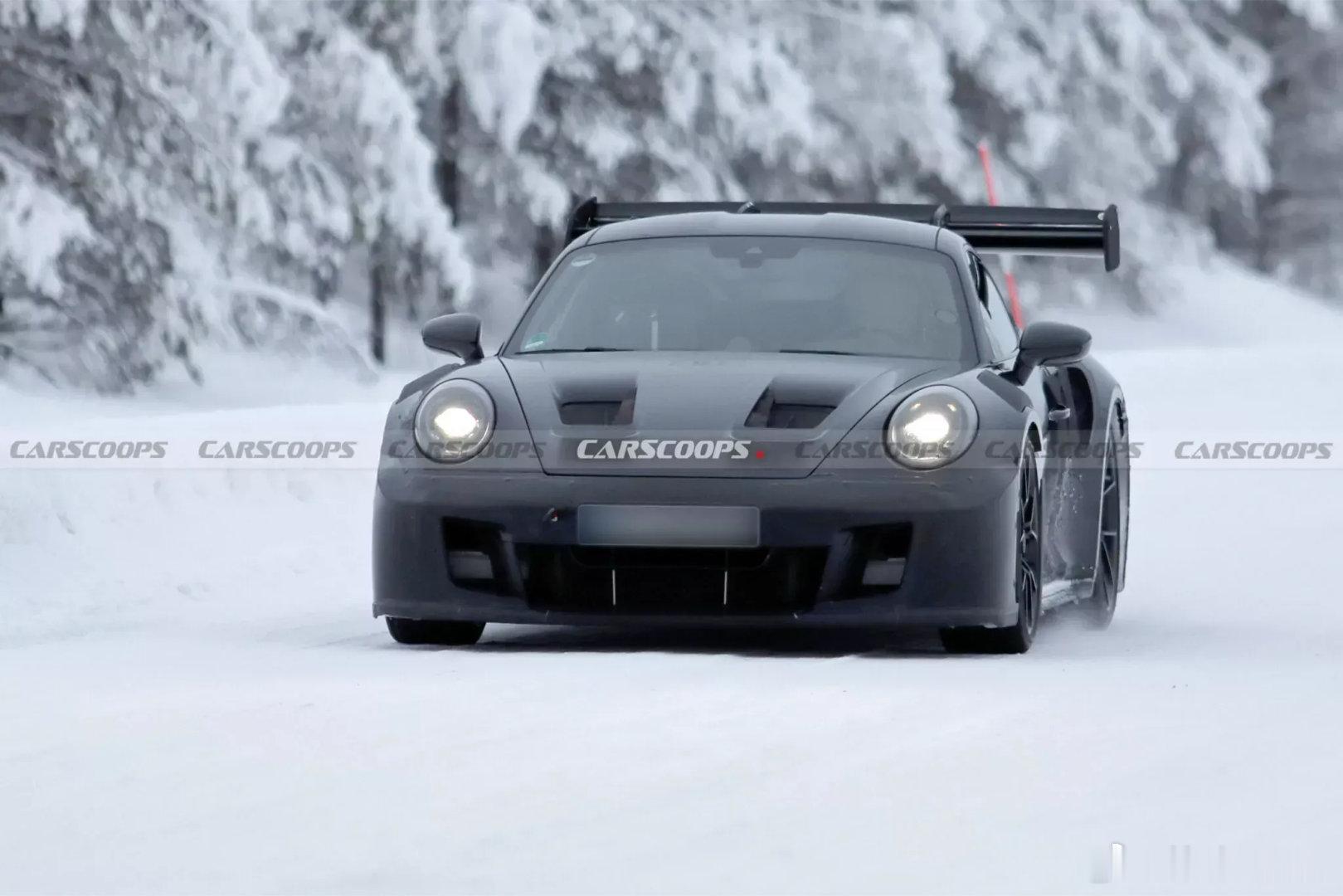 保时捷改款911 GT3 RS冬测测试图爆出新车基本没有伪装,前脸配备攻击性十足的前保险杠,进气口造型棱角分明,全新发动机盖也同步亮相,散热通风口的布局经过优化设计。车尾夸张的大尾翼足足有三片翼片。据小道消息传言可能会首次在GT3 RS车型上搭载涡轮引擎,值得好好期待一下了保时捷911保时捷豪车超跑