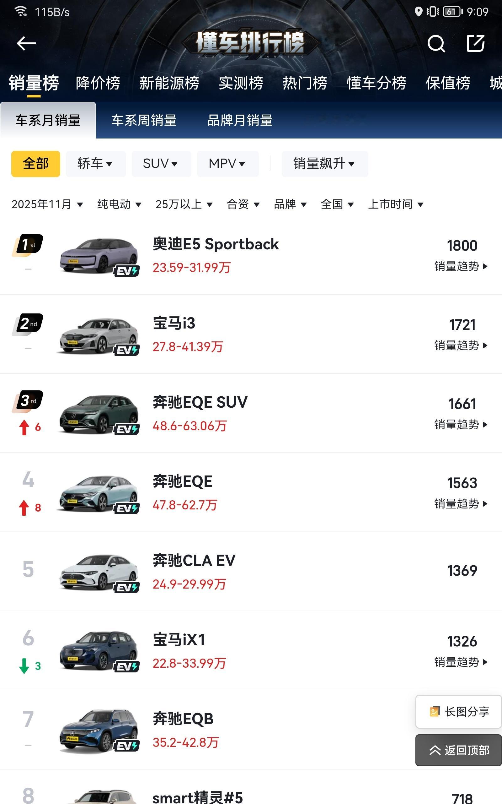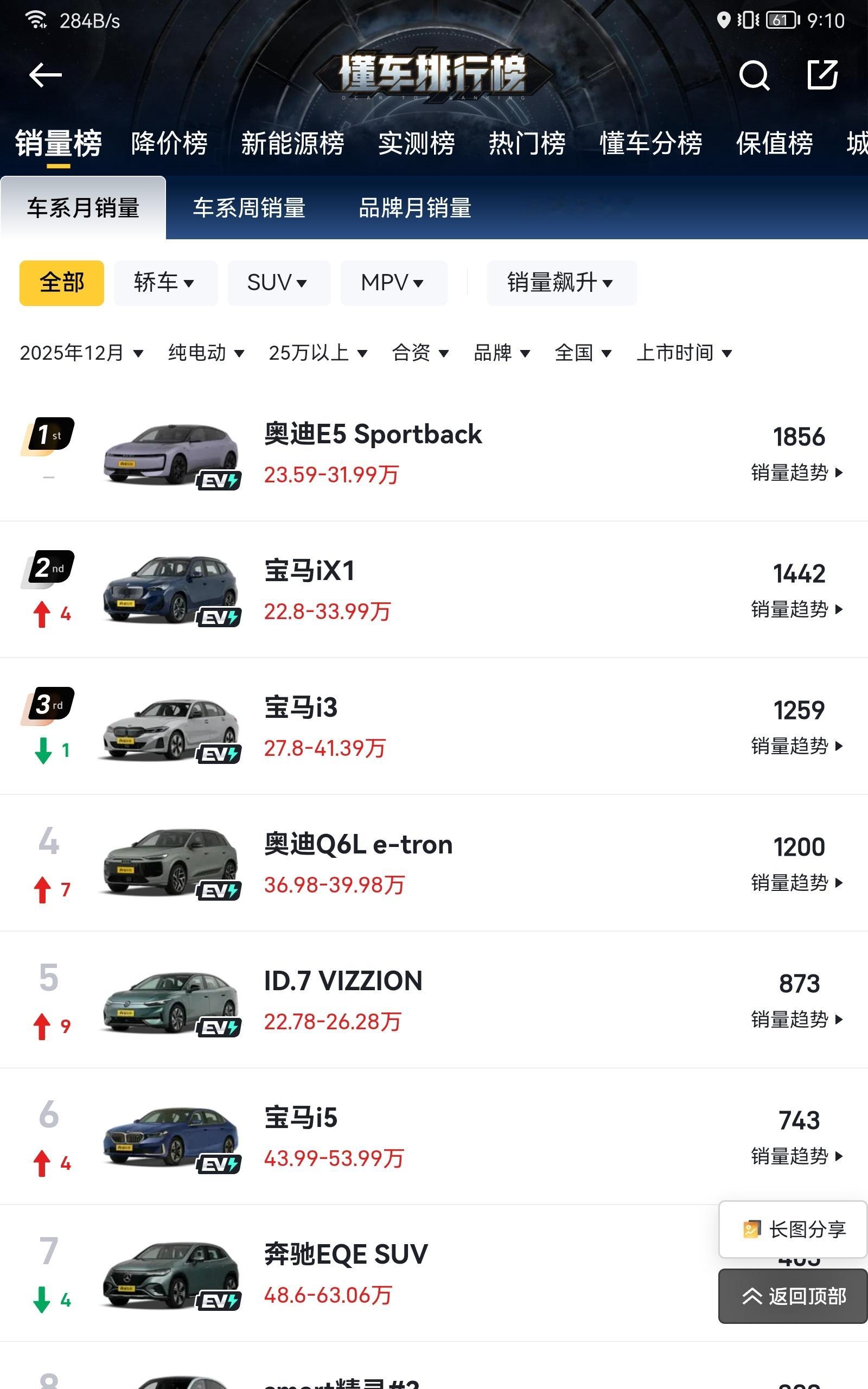 车市观察 纯电BBA过去3个月的销量 12月的数据里没有CLA 而CLA非常重要 因为CLA的定价是完全照着特斯拉毛豆3来的 而且CLA体验很好 更豪华 还有800V 如果这样都不行 那基本就可以断定BBA电车恐怕已经彻底失去民心 哪怕产品力追上来可能都无力回天了 目前每个月销冠都是AUDI 可能打造中国特供车是目前合资品牌电车的最佳的出路 马自达 日产 奥迪 丰田 但凡走这条路的全都走通了 无一失败