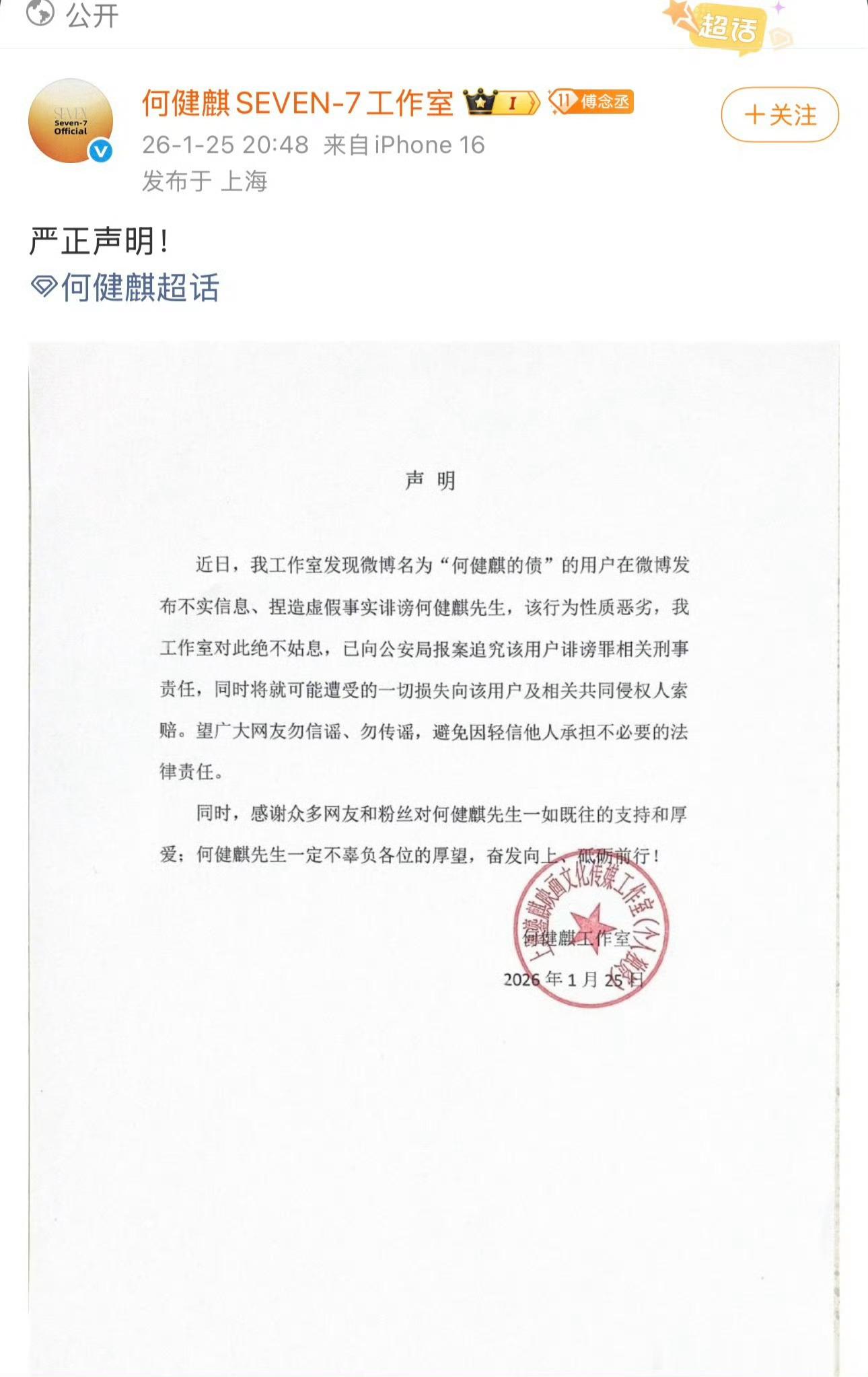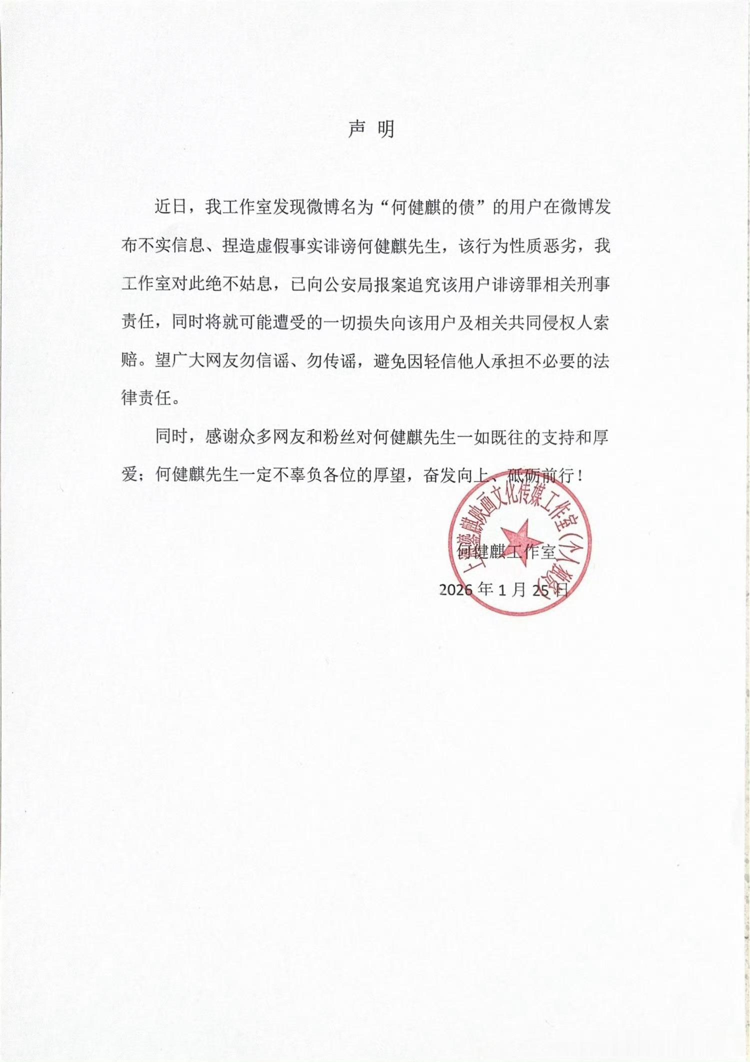 何健麒工作室反应好快,否认了自己涉毒的说法,还说博主“何健麒的债都是造谣已经向公安机关报警”,两件你们相信谁