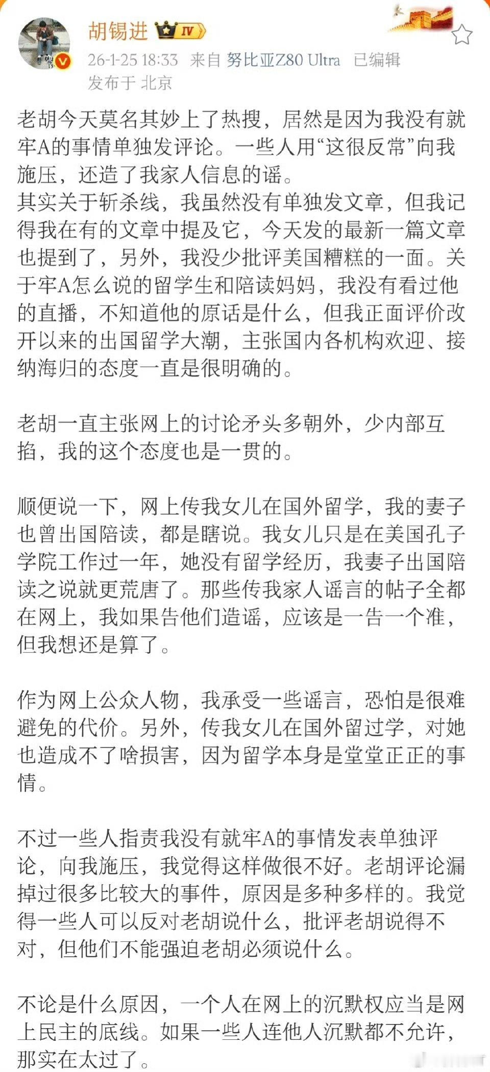 胡锡进就牢A斩杀线发评论 这个孔子学院,会不会有点类似于去年董小姐的4+4之类的东西