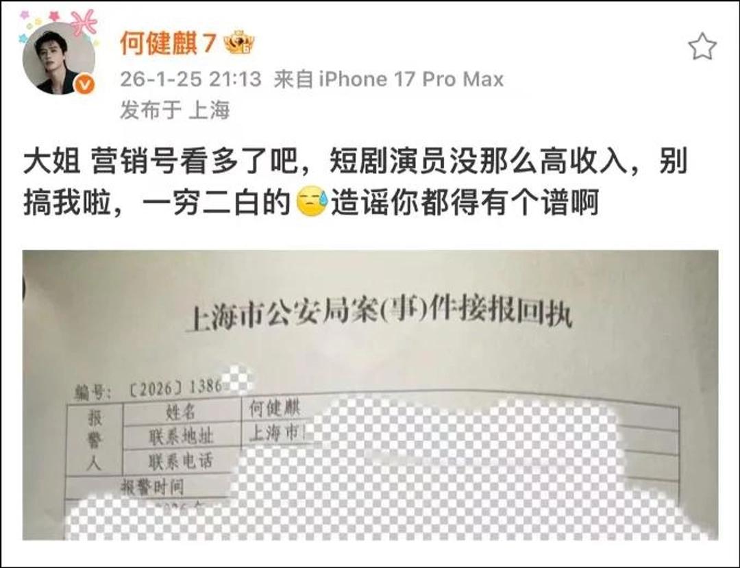 1月25日晚微博那叫一个热闹。一个自称何健麒前女友的账号,举着身份证实名举报,说2021年同居期间多次见他吸毒,连当年在北京海淀被警方带走检测的细节都说得清清楚楚。视频里还提到剃发接发的事儿,说得有鼻子有眼的。 结果你猜怎么着?还没等网友反应过来,何健麒工作室的声明就发出来了,直接说这是捏造诽谤,已经报警了。 何健麒本人更刚,直接回怼:“大姐,营销号看多了吧,短剧演员没那么高收入,别搞我啦。”还晒了报案回执。这反应速度,快得让人措手不及。 说实话,我有点懵。一边是实名举报,连身份证都亮出来了;另一边是直接报警,本人亲自下场。两边都这么硬气,这瓜该怎么吃? 仔细想想,这事儿有几个疑点。举报人说2021年的事,为什么等到现在才说?何健麒去年3月就被官方点名为“劣迹演员”了,要举报那时候不是更好?而且他说的“短剧演员没那么高收入”,听着像在暗示经济纠纷,可举报内容却是涉毒,这两件事完全不搭边啊。 更关键的是,涉毒可不是小事。娱乐圈因为涉毒翻车的,有一个算一个,全都凉透了。何健麒要是真有问题,还敢这么高调报警?这不是自投罗网吗?可举报人要是说谎,那也太大胆了,实名举报诽谤可是要坐牢的。 现在的情况是,两边都赌上了。举报人赌自己说的是真的,何健麒赌自己是清白的。警方已经介入,这事儿就不是网友能断案的了。要么举报人进去,要么何健麒彻底凉凉,没有第三种可能。 我注意到,到现在为止,没有任何官方消息。海淀警方没说话,何健麒也没说是哪个分局接的案。大家都在等,等一个石锤。 其实这事儿最让人唏嘘的是,娱乐圈的信任已经脆弱到这个地步了。一有举报,大家第一反应就是“肯定是真的”,因为被打脸太多次了。但这次何健麒的反应又太反常,让人忍不住想:万一这次真是被冤枉的呢? 等等看吧。让子弹再飞一会儿。警方调查需要时间,我们这些吃瓜群众也别急着站队。毕竟,涉毒这种指控太严重了,严重到不能光靠一面之词就下定论。 只是希望,无论最后结果如何,都能给所有人一个交代。如果举报属实,那必须严惩;如果是诬陷,那举报人也该付出代价。娱乐圈需要清朗,但更需要公正。
