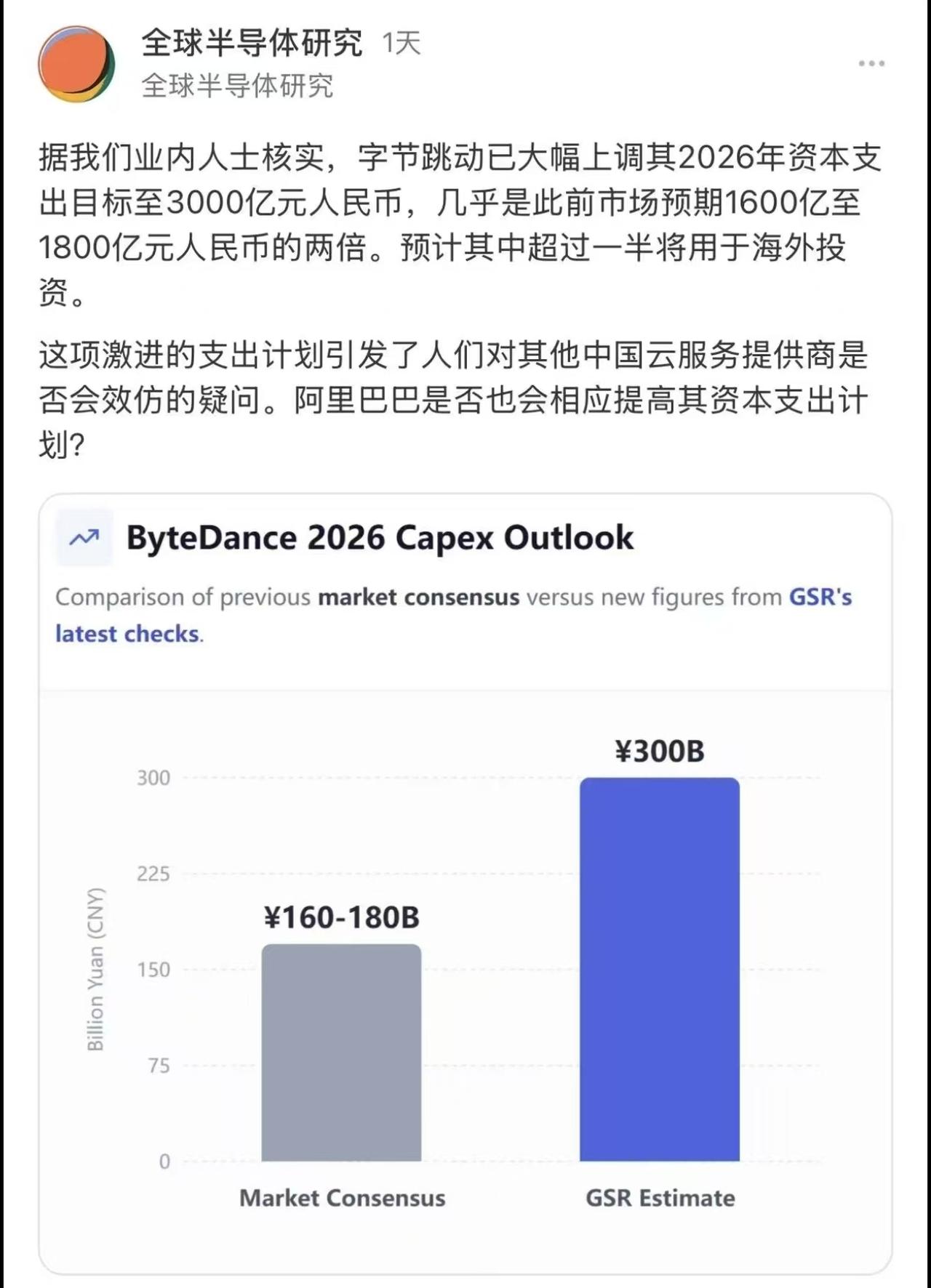 【小熊团队】国产算力更新: 周末字节传26年capex超3000亿(之前传2