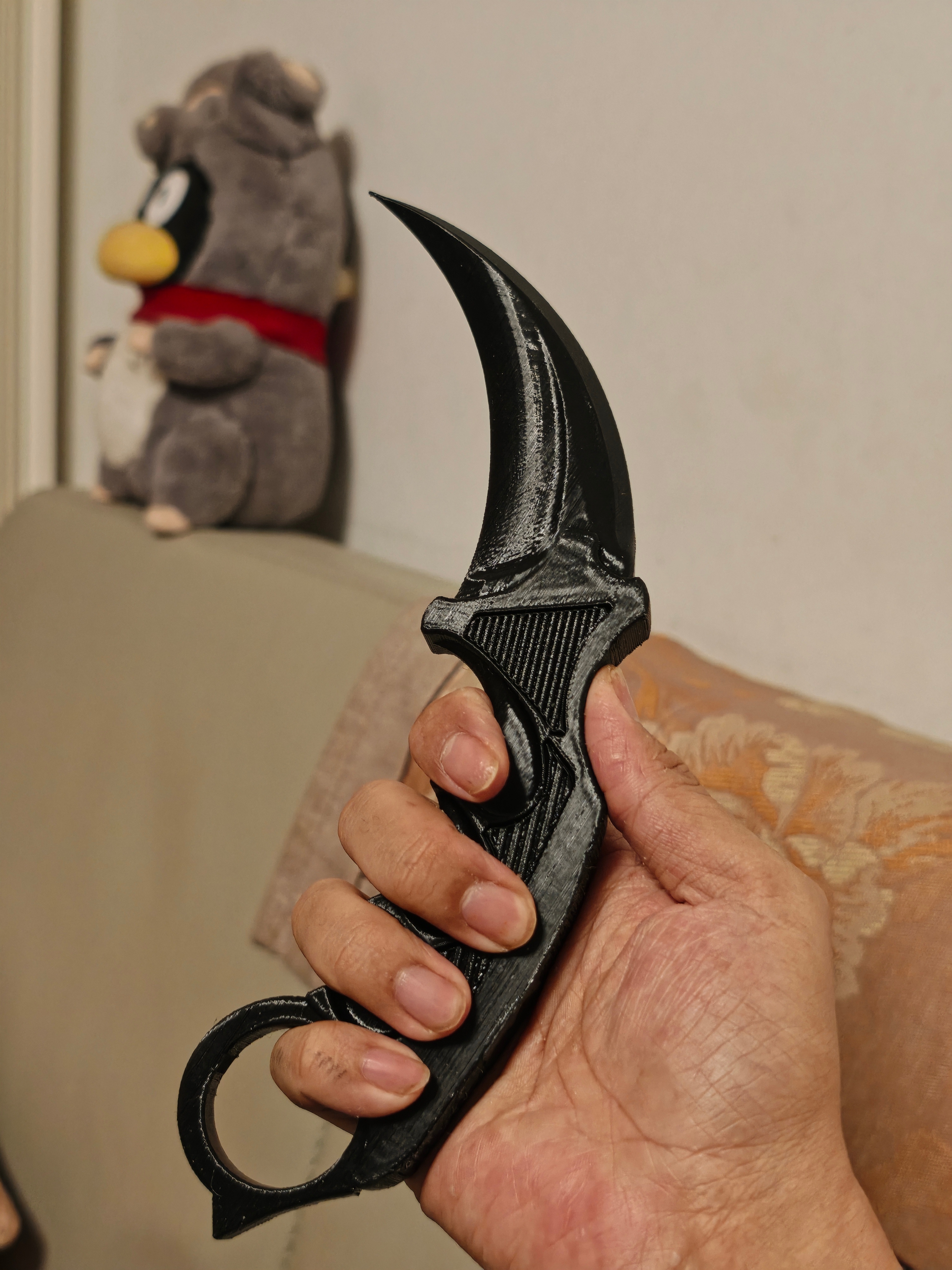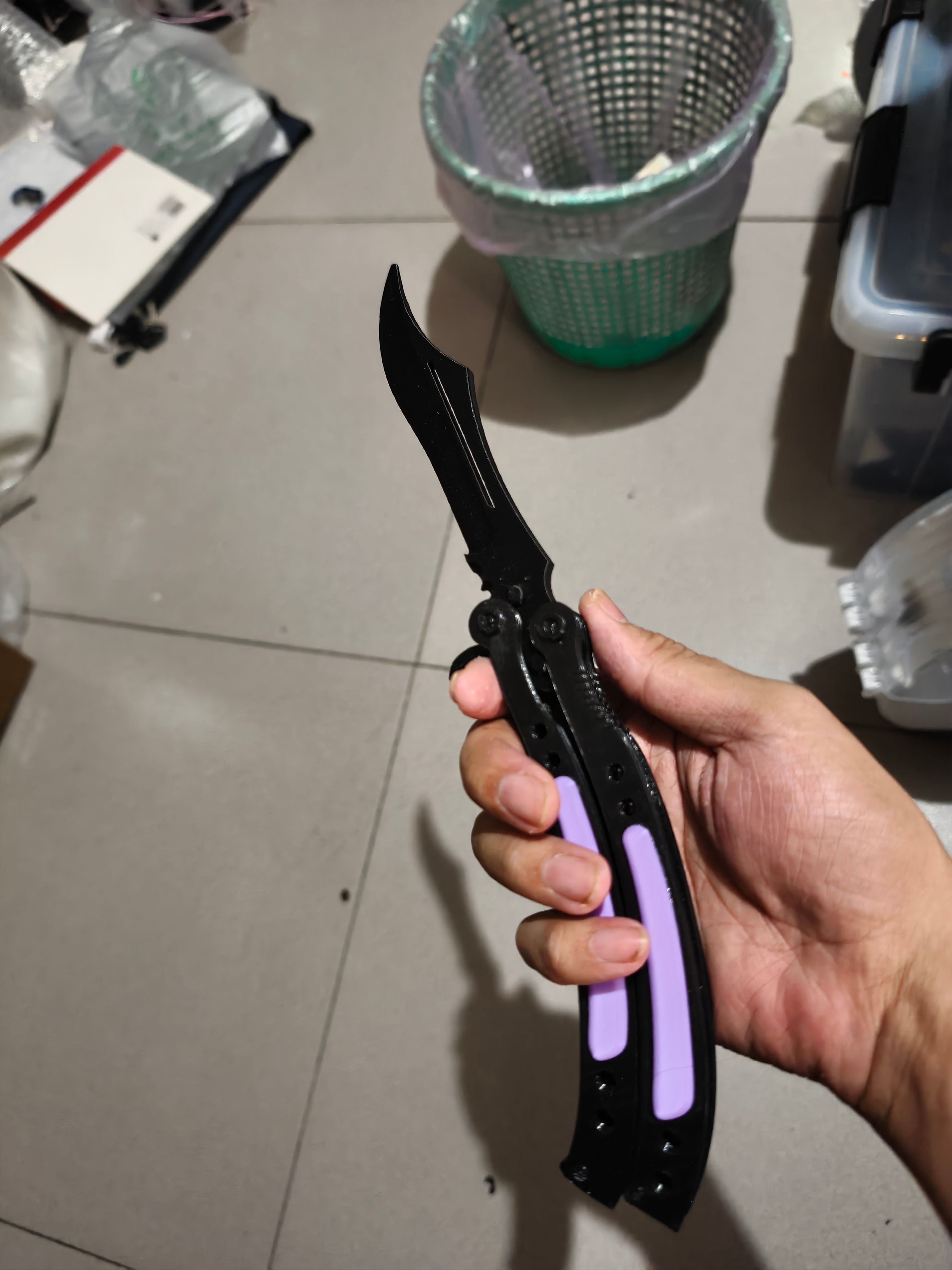 帮观众代工的cs go武器。都是3d打印。蝴蝶刀,匕首,爪刀成本都是几块钱,比较安全,不怕伤到自己。ak成本大几十块,发射皮筋的,支持连发,可换弹夹。威力就比较低了,还没有手发射橡皮筋的力气大。我们小时候要是有这些,那不得馋哭一个小区的小孩们~